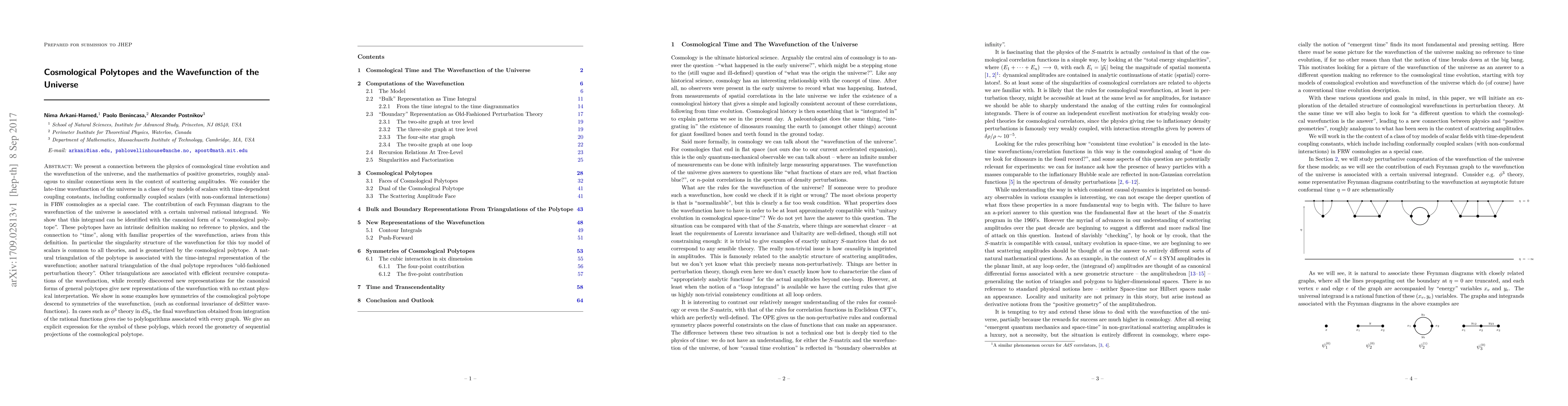 This paper explores a novel mathematical framework linking cosmological time evolution to positive geometries, identifying Feynman diagrams' contributions to the universe's wavefunction as "cosmological polytopes." These polytopes provide new representations of the wavefunction and reveal symmetries, such as conformal invariance, through their geometric structure.