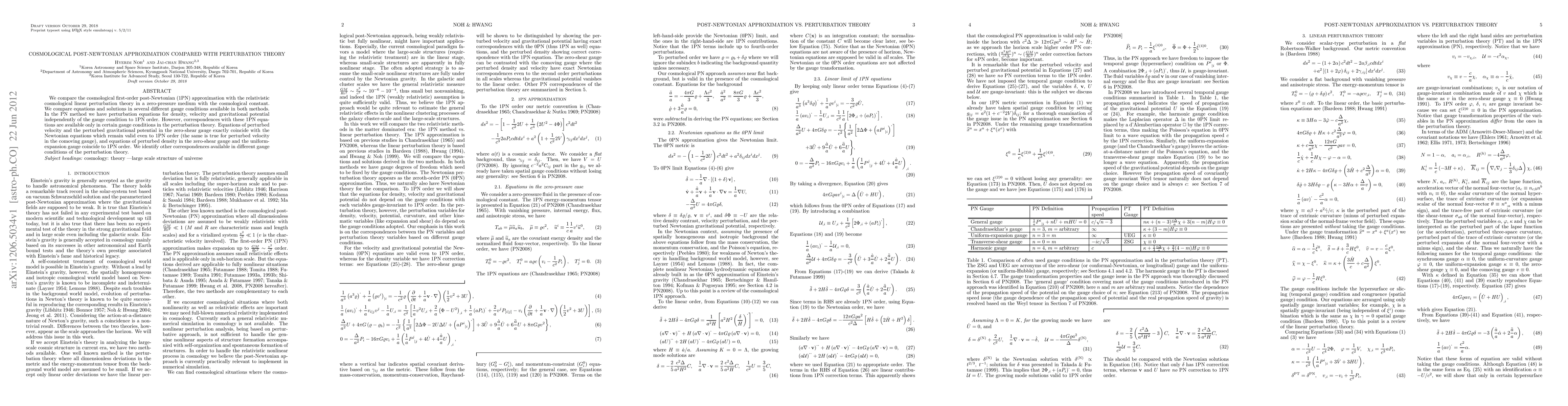 The paper establishes a comprehensive comparison between the cosmological post-Newtonian approximation and perturbation theory, identifying specific gauge conditions where equations and solutions align, thus providing a deeper understanding of their relationship.