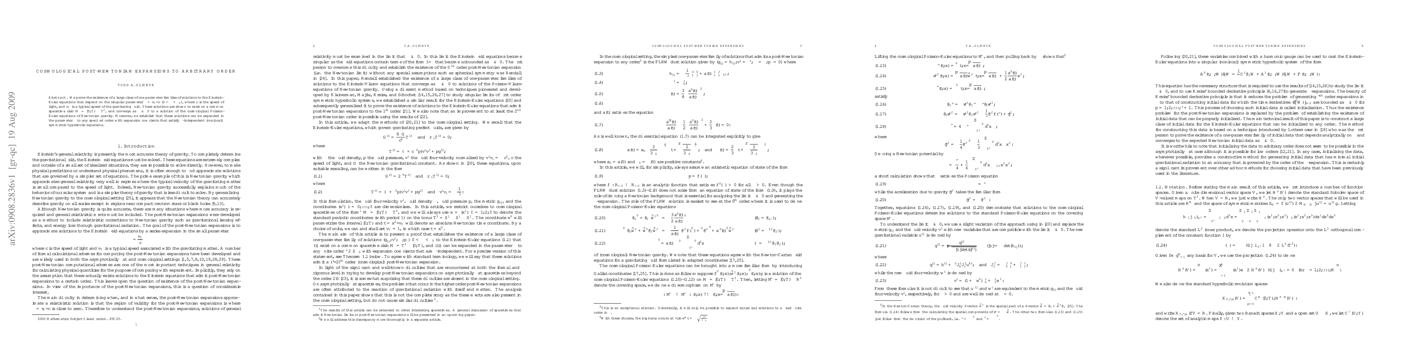 Researchers prove the existence of a class of cosmological solutions dependent on a singular parameter that converge to Newtonian gravity as it approaches zero. These solutions can be expanded in the parameter to any order, satisfying symmetric hyperbolic equations.