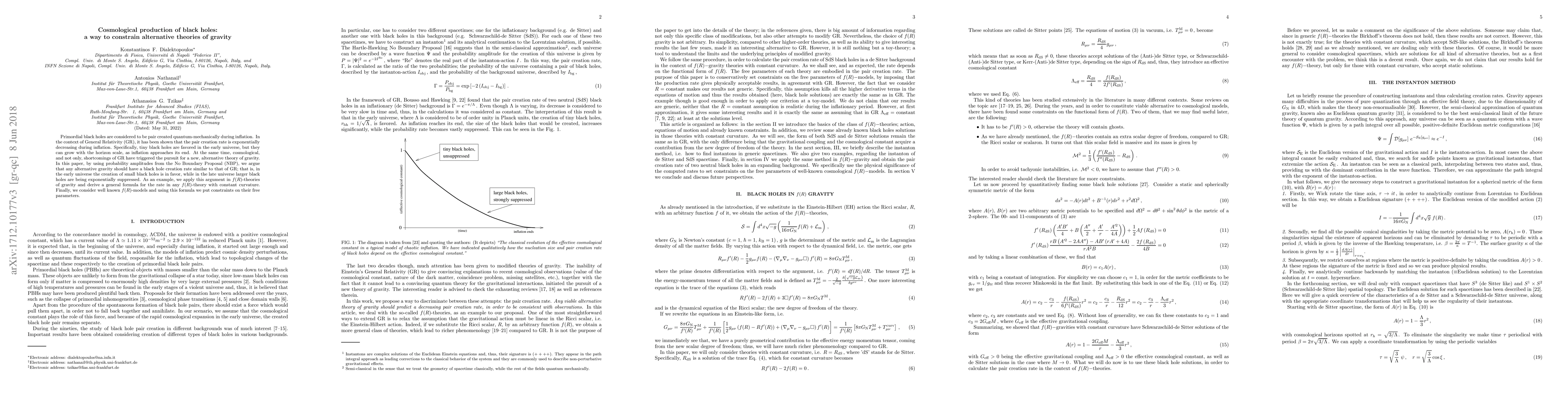 This paper explores the cosmological production of primordial black holes during inflation, arguing that alternative gravity theories should maintain a similar black hole creation rate to General Relativity, favoring small black holes in the early universe. It derives constraints for $f(R)$-gravity models using the No Boundary Proposal, suggesting these models must suppress larger black holes in the late universe.