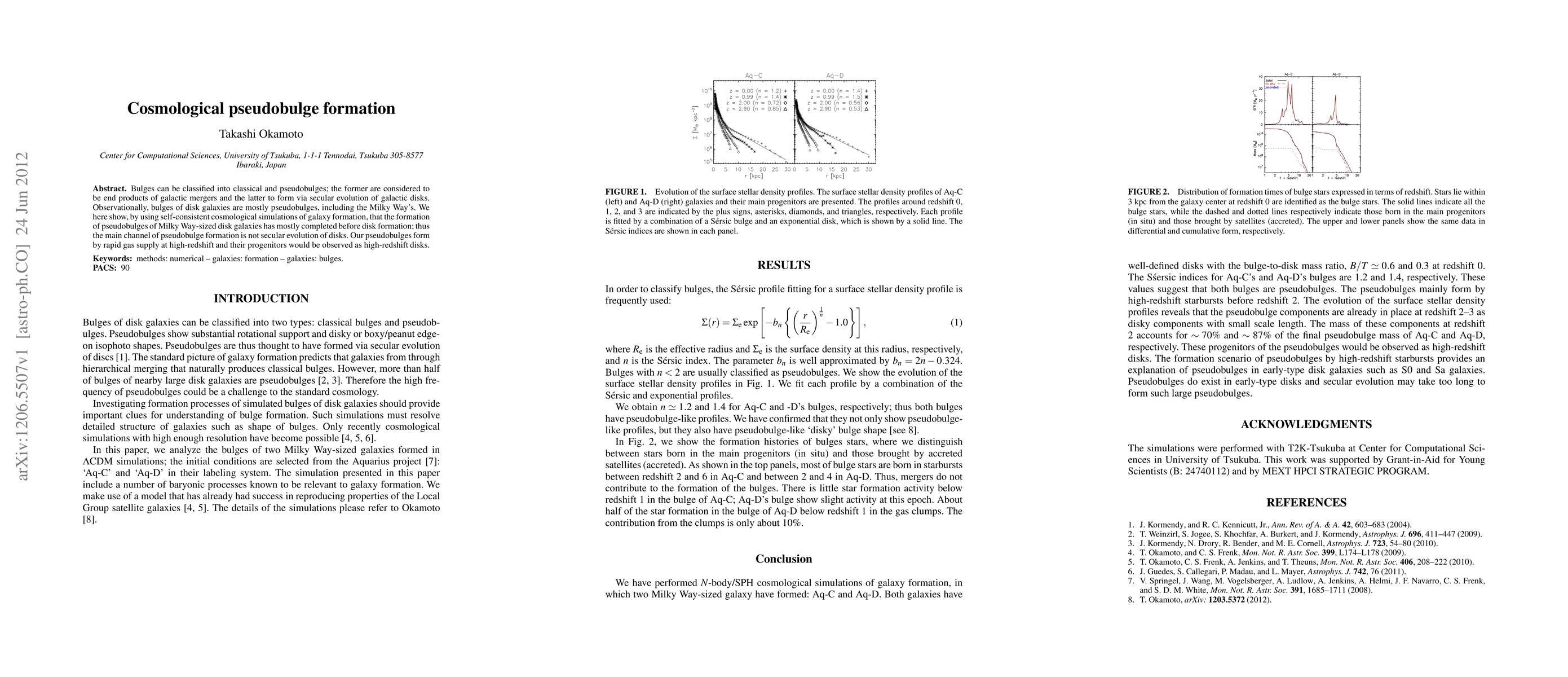 Bulges can be classified into classical and pseudobulges; the former are considered to be end products of galactic mergers and the latter to form via secular evolution of galactic disks. Observationally, bulges of disk galaxies are mostly pseudobulges, including the Milky Way's. We here show, by using self-consistent cosmological simulations of galaxy formation, that the formation of pseudobulges of Milky Way-sized disk galaxies has mostly completed before disk formation; thus the main channel of pseudobulge formation is not secular evolution of disks. Our pseudobulges form by rapid gas supply at high-redshift and their progenitors would be observed as high-redshift disks.
