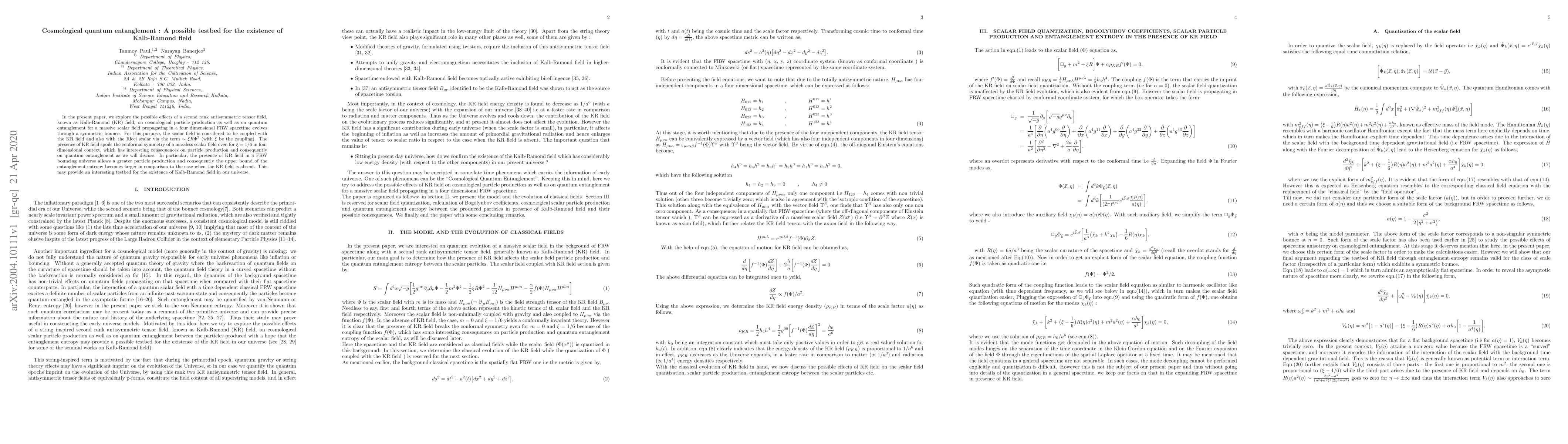 A new study explores the impact of a hypothetical field called Kalb-Ramond field on quantum entanglement in the universe, suggesting its presence could lead to increased particle production and a larger upper bound for entanglement entropy.