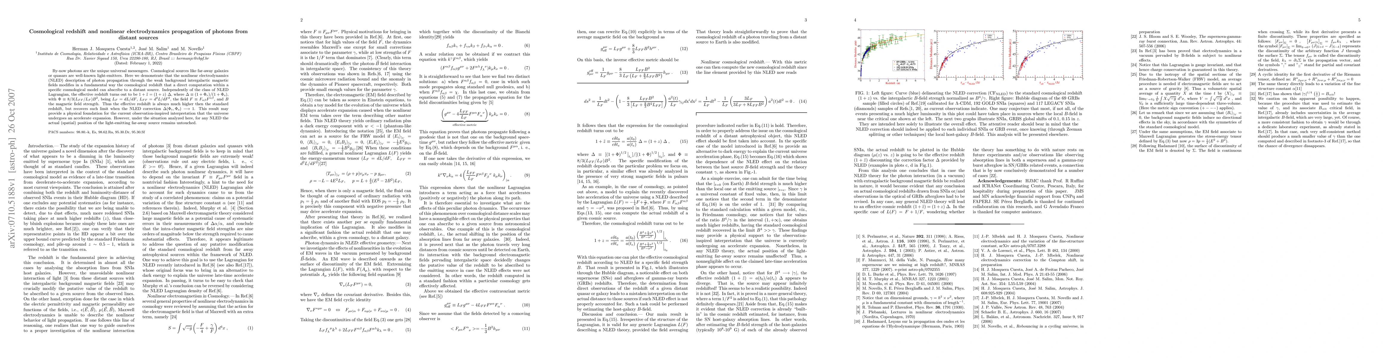 By-now photons are the unique universal messengers. Cosmological sources like far-away galaxies or quasars are well-known light-emitters. Here we demonstrate that the nonlinear electrodynamics (NLED) description of photon propagation through the weak background intergalactic magnetic fields modifies in a fundamental way the cosmological redshift that a direct computation within a specific cosmological model can abscribe to a distant source. Independently of the class of NLED Lagrangian, the effective redshift turns out to be $1 + \tilde{z} = (1 + z) \Delta$, where $\Delta \equiv (1 + \Phi_e)/(1 + \Phi_o)$, with $\Phi \equiv {8}/{3} ({L_{FF}}/{L_F}) B^2$, being $L_F = {dL}/{dF}$, $L_{FF} = {d^2L}/{dF^2}$, the field $F\equiv F_{\alpha \beta} F^{\alpha \beta}$, and $B$ the magnetic field strength. Thus the effective redshift is always much higher then the standard redshift, but recovers such limit when the NLED correction $\Delta(\Phi_e, \Phi_o) \longrightarrow 1$. This result may provide a physical foundation for the current observation-inspired interpretation that the universe undergoes an accelerate expansion. However, under the situation analyzed here, for any NLED the actual (spatial) position of the light-emitting far-away source remains untouched.