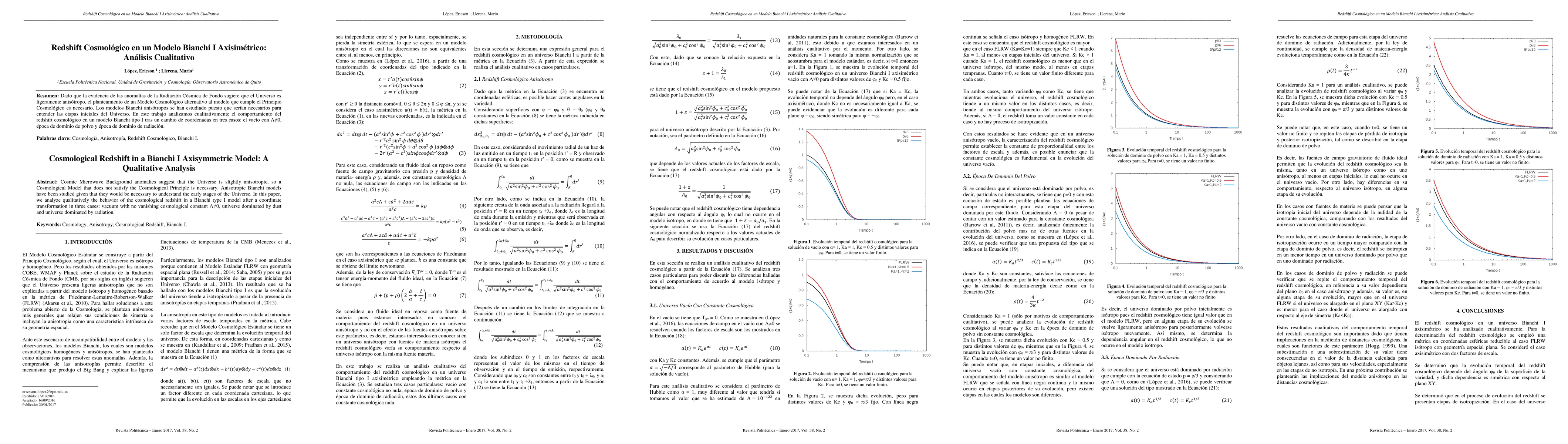 This paper qualitatively analyzes the cosmological redshift in a Bianchi I model, exploring three scenarios: vacuum with a non-zero cosmological constant, a dust-dominated universe, and a radiation-dominated universe, to understand the early Universe's anisotropy beyond the Cosmological Principle.