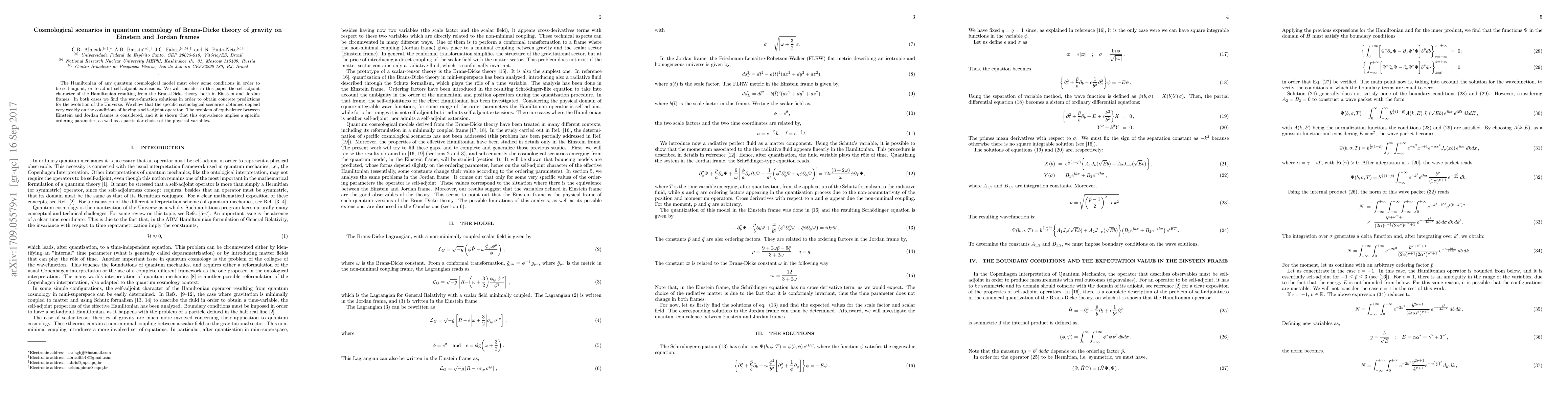 The Hamiltonian of any quantum cosmological model must obey some conditions in order to be self-adjoint, or to admit self-adjoint extensions. We will consider in this paper the self-adjoint character of the Hamiltonian resulting from the Brans-Dicke theory, both in Einstein and Jordan frames. In both cases we find the wave-function solutions in order to obtain concrete predictions for the evolution of the Universe. We show that the specific cosmological scenarios obtained depend very weakly on the conditions of having a self-adjoint operator. The problem of equivalence between Einstein and Jordan frames is considered, and it is shown that this equivalence implies a specific ordering parameter, as well as a particular choice of the physical variables.