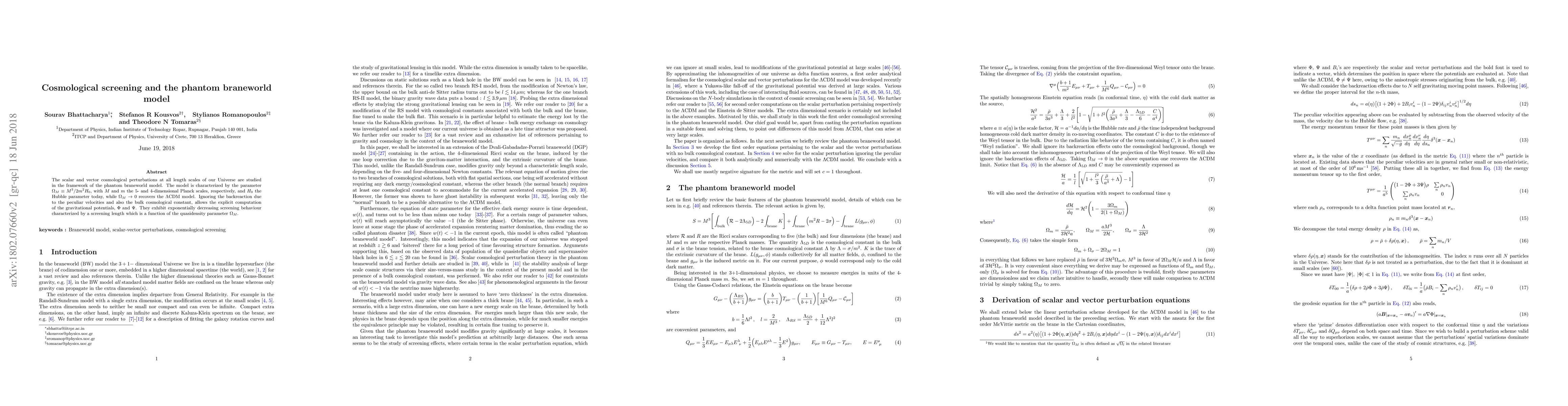 This research paper studies the cosmological perturbations in the phantom braneworld model, finding that they exhibit exponentially decreasing screening behavior with a screening length dependent on the quasidensity parameter $ u$. The model recovers the $ m CDM$ model as $ u ightarrow 0$.