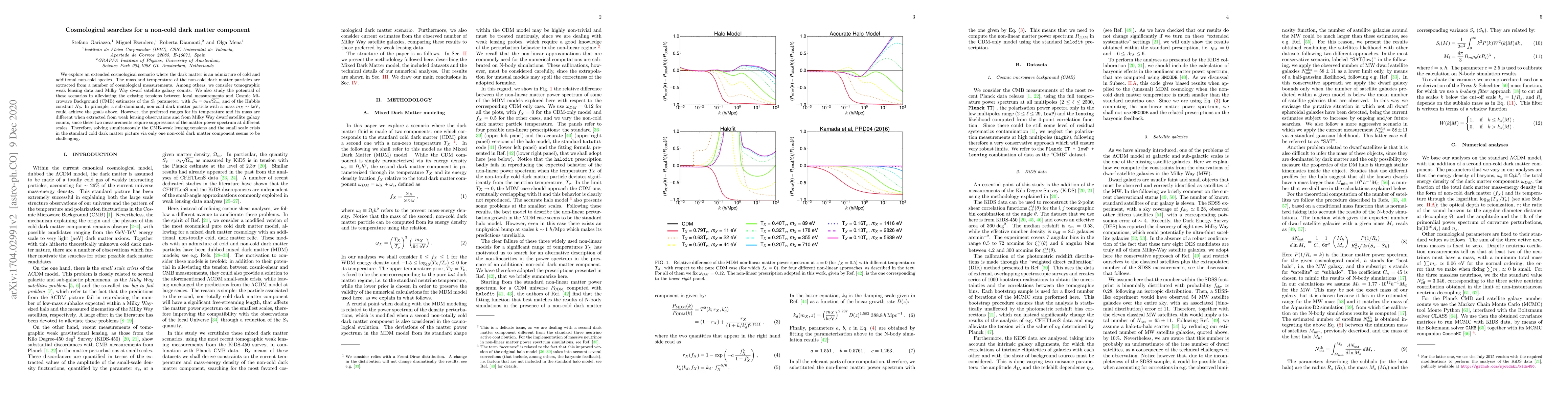 This paper investigates a cosmological model where dark matter includes both cold and non-cold components, extracting mass and temperature from various measurements. It finds that resolving tensions between local measurements and CMB estimates may require a non-cold dark matter particle with a keV mass, but achieving this with one component is challenging due to differing requirements from weak lensing and dwarf satellite galaxy data.