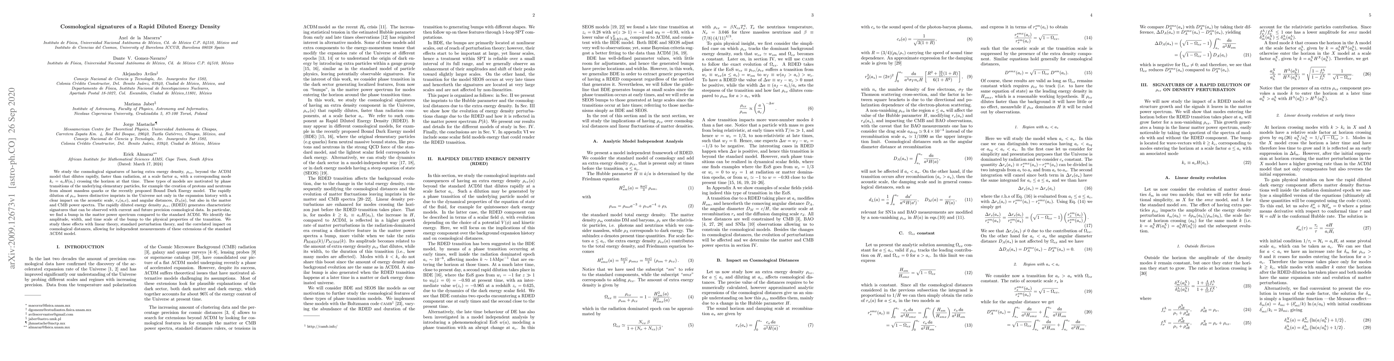 We study the cosmological signatures of having extra energy density, $\rho_{ex}$, beyond the $\Lambda$CDM model that dilutes rapidly, faster than radiation, at a scale factor $a_c$ with a corresponding mode $k_c=a_c H(a_c)$ crossing the horizon at that time. These types of models are motivated by phase transitions of the underlying elementary particles, for example the creation of protons and neutrons from almost massless quarks or the recently proposed Bound Dark Energy model. The rapidly dilution of $\rho_{ex}$ leaves distinctive imprints in the Universe not only in the expansion history with a clear impact on the acoustic scale, $r_s(a_cc)$, and angular distances, $D_A(a)$, but also in the matter and CMB power spectra. The rapidly diluted energy density $\rho_{ex}$, (RDED) generates characteristic signatures that can be observed with current and future precision cosmological data. In particular, we find a bump in the matter power spectrum compared to the standard $\Lambda$CDM. We identify the amplitude, width, and time scale of the bump to the physical properties of the transition. We study these effects with linear theory, standard perturbation theory, and the correlated impact on cosmological distances, allowing for independent measurements of these extensions of the standard $\Lambda$CDM model.