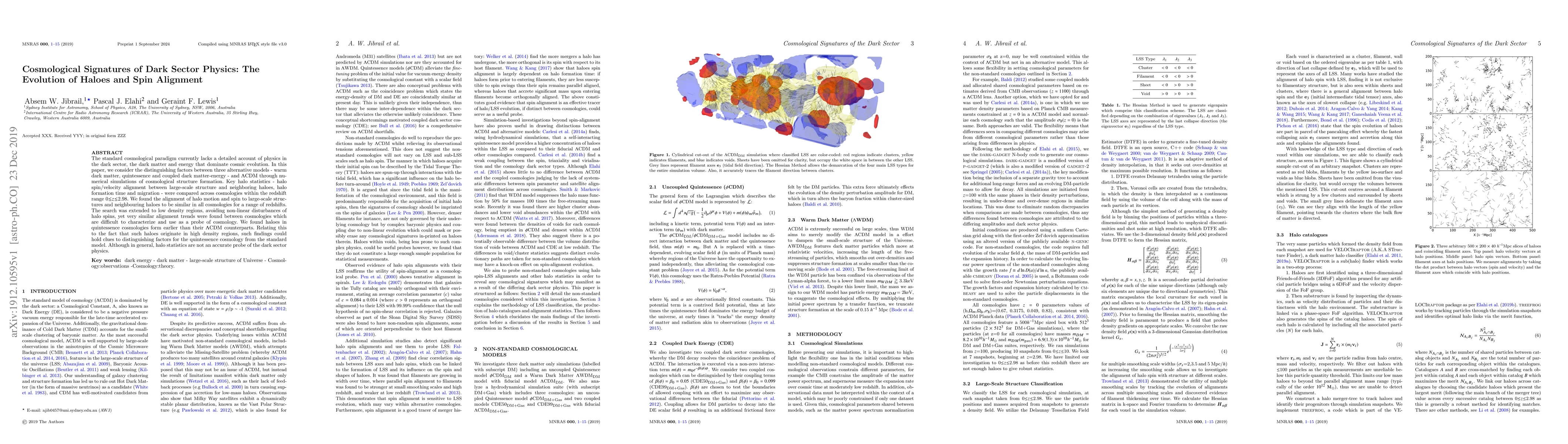 This paper explores the evolution of haloes and their spin/velocity alignment in three alternative dark sector models: warm dark matter, quintessence, and coupled dark matter-energy, compared to the standard ΛCDM model. Despite similar alignment trends across cosmologies, haloes in quintessence models form earlier, hinting at potential distinguishing factors from the standard model, though halo statistics generally remain a poor probe of dark sector physics.
