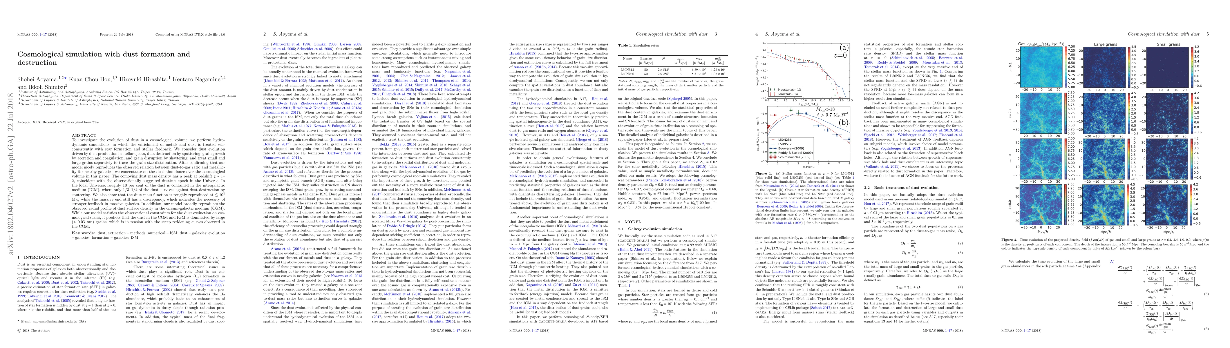 This paper presents cosmological simulations that self-consistently model dust formation and destruction alongside star formation and feedback. The study finds a peak in comoving dust mass density at $z\sim 1$--2, with about 10% of dust in the intergalactic medium, where only a third survives sputtering. The model reproduces observed dust-to-gas ratios and dust mass functions but predicts large grains dominate in the CGM, conflicting with observed reddening curves.