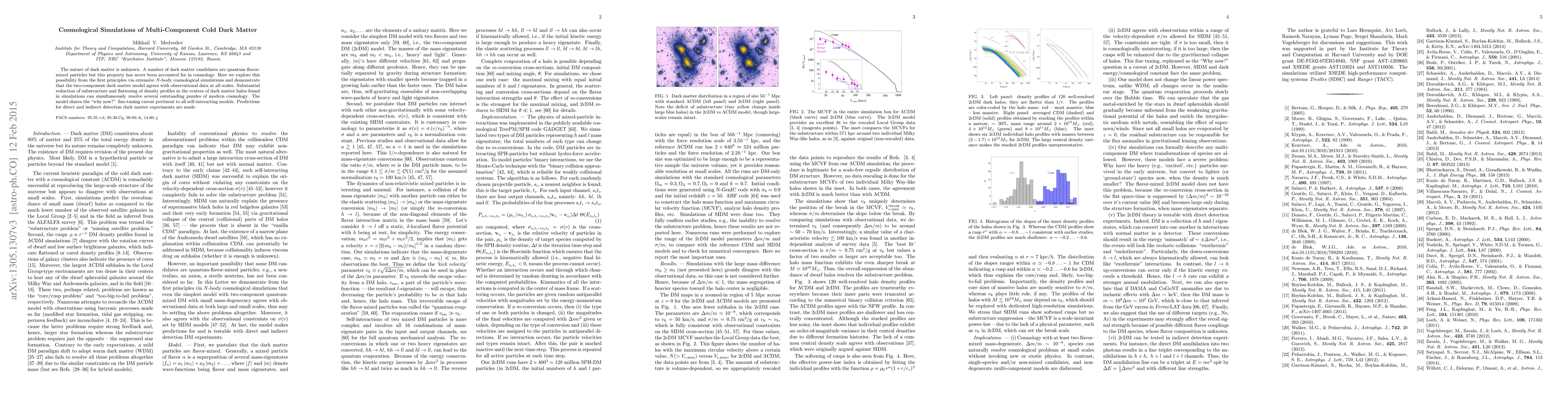 The nature of dark matter is unknown. A number of dark matter candidates are quantum flavor-mixed particles but this property has never been accounted for in cosmology. Here we explore this possibility from the first principles via extensive $N$-body cosmological simulations and demonstrate that the two-component dark matter model agrees with observational data at all scales. Substantial reduction of substructure and flattening of density profiles in the centers of dark matter halos found in simulations can simultaneously resolve several outstanding puzzles of modern cosmology. The model shares the "why now?" fine-tuning caveat pertinent to all self-interacting models. Predictions for direct and indirect detection dark matter experiments are made.