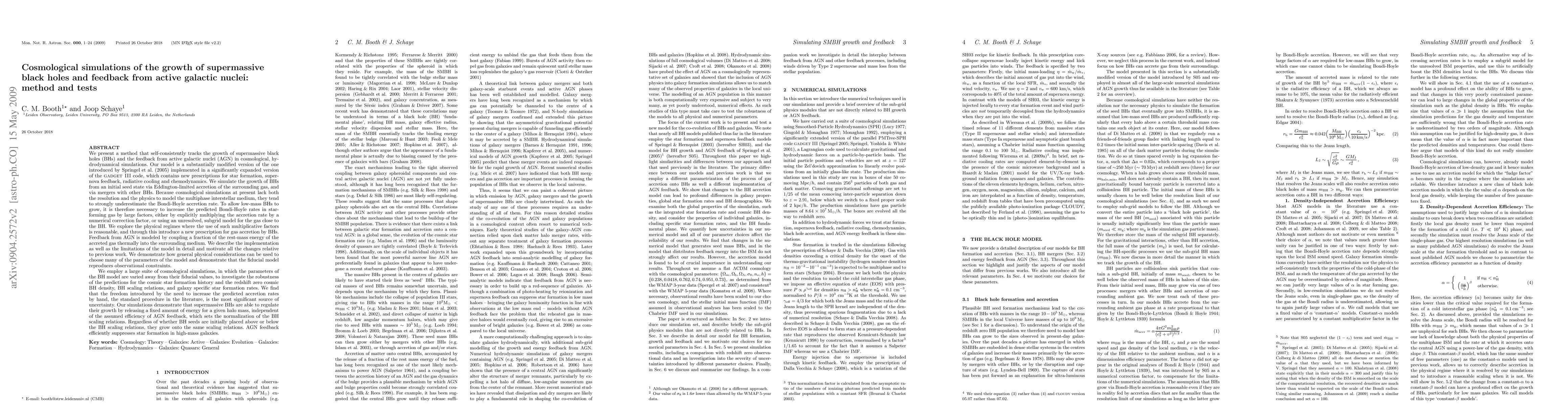 This paper presents a modified method to simulate the growth of supermassive black holes (BHs) and their feedback from active galactic nuclei (AGN) in cosmological simulations. The authors address the issue of underestimated Bondi-Hoyle accretion rates and introduce a new prescription for gas accretion, while modeling AGN feedback through thermal energy injection into the surrounding medium. They find that BHs regulate their growth by releasing a fixed energy amount, independent of AGN feedback efficiency.