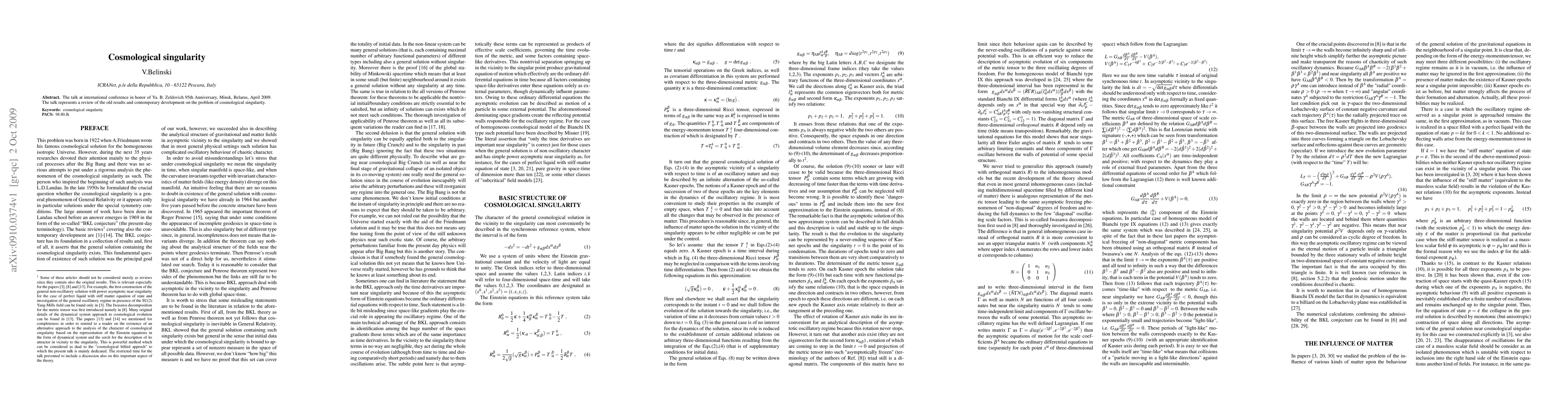 The work combines old results with contemporary developments, providing a detailed analysis of Kasner epochs and their significance in the oscillatory behavior near cosmological singularities, which contributes to the ongoing debate on the nature of singularities in general relativity and cosmology.