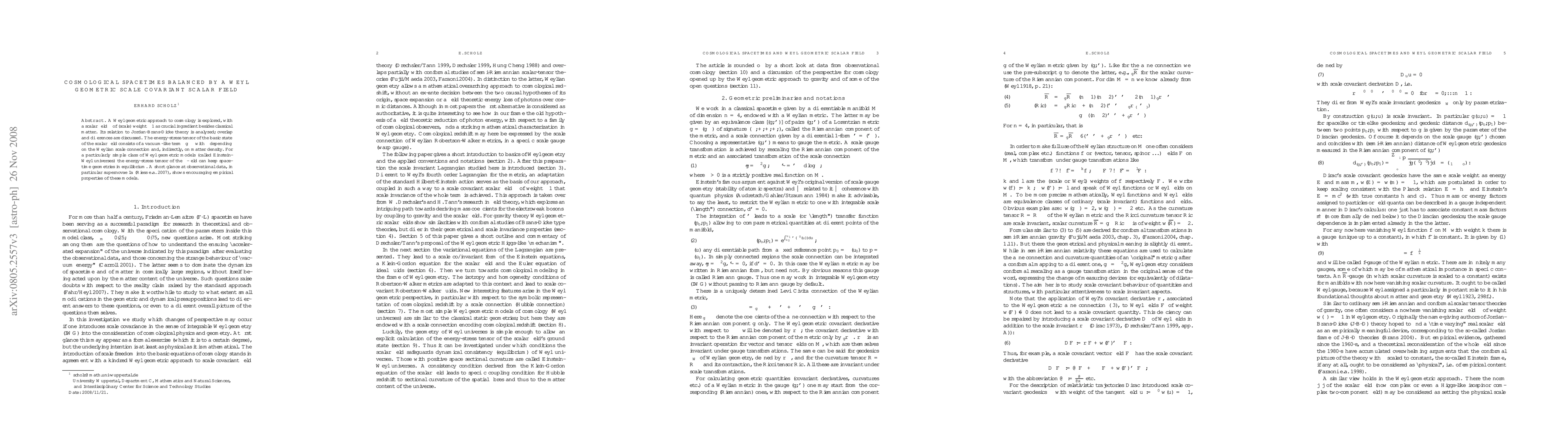 A scale invariant, Weyl geometric, Lagrangian approach to cosmology is explored, with a a scalar field phi of (scale) weight -1 as a crucial ingredient besides classical matter \cite{Tann:Diss,Drechsler:Higgs}. For a particularly simple class of Weyl geometric models (called {\em Einstein-Weyl universes}) the Klein-Gordon equation for phi is explicitly solvable. In this case the energy-stress tensor of the scalar field consists of a vacuum-like term Lambda g_{mu nu} with variable coefficient Lambda, depending on matter density and spacetime geometry, and of a dark matter like term. Under certain assumptions on parameter constellations, the energy-stress tensor of the phi-field keeps Einstein-Weyl universes in locally stable equilibrium. A short glance at observational data, in particular supernovae Ia (Riess ea 2007), shows interesting empirical properties of these models.