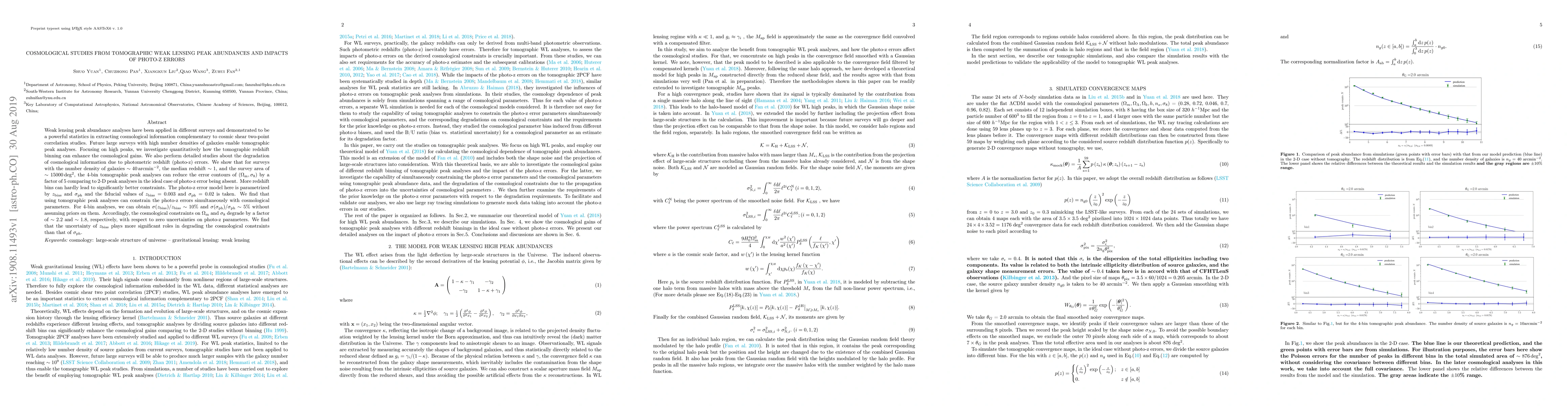 Tomographic weak lensing peak abundance analyses can enhance cosmological gains by reducing error contours of (Omega_m, sigma_8) by a factor of 5 compared to 2-D peak analyses, even with photometric redshift errors present.