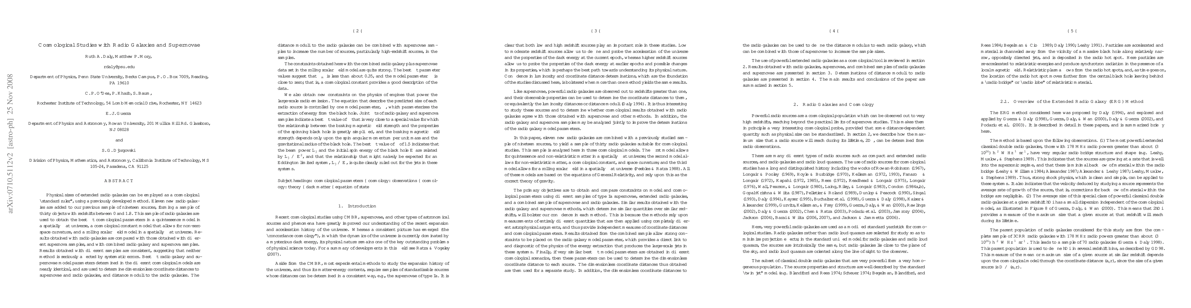 Physical sizes of extended radio galaxies can be employed as a cosmological "standard ruler", using a previously developed method. Eleven new radio galaxies are added to our previous sample of nineteen sources, forming a sample of thirty objects with redshifts between 0 and 1.8. This sample of radio galaxies are used to obtain the best fit cosmological parameters in a quintessence model in a spatially flat universe, a cosmological constant model that allows for non-zero space curvature, and a rolling scalar field model in a spatially flat universe. Results obtained with radio galaxies are compared with those obtained with different supernova samples, and with combined radio galaxy and supernova samples. Results obtained with different samples are consistent, suggesting that neither method is seriously affected by systematic errors. Best fit radio galaxy and supernovae model parameters determined in the different cosmological models are nearly identical, and are used to determine dimensionless coordinate distances to supernovae and radio galaxies, and distance moduli to the radio galaxies. The distance moduli to the radio galaxies can be combined with supernovae samples to increase the number of sources, particularly high-redshift sources, in the samples. The constraints obtained here with the combined radio galaxy plus supernovae data set in the rolling scalar field model are quite strong. The best fit parameter values suggest a value of omega is less than about 0.35, and the model parameter alpha is close to zero; that is, a cosmological constant provides a good description of the data. We also obtain new constraints on the physics of engines that power the large-scale radio emission.