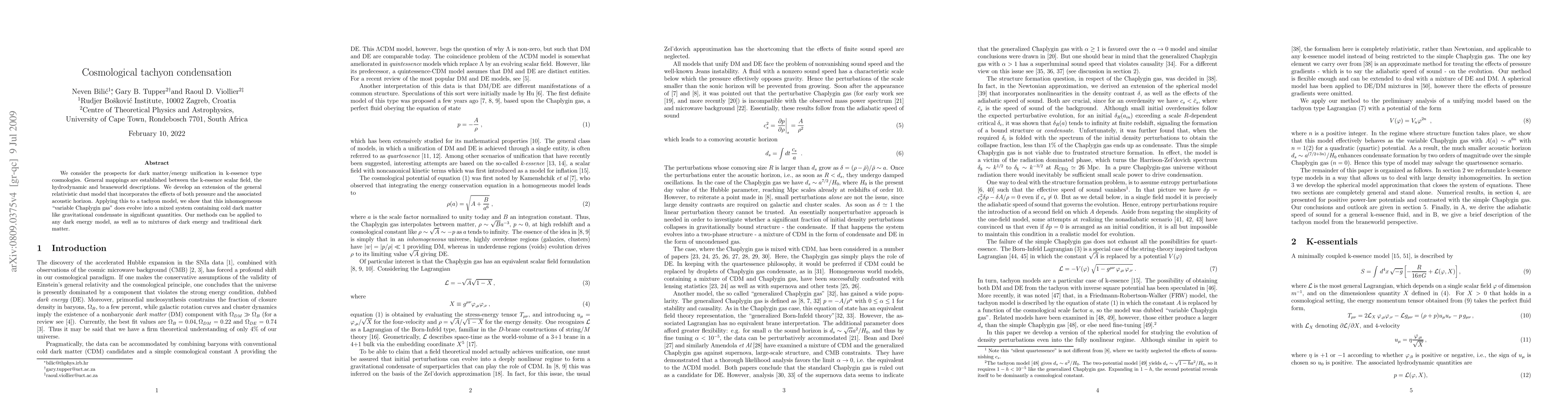 Researchers explore a new theory for unifying dark matter and energy, finding that a tachyon model can create cold dark matter-like gravitational condensate in significant quantities.