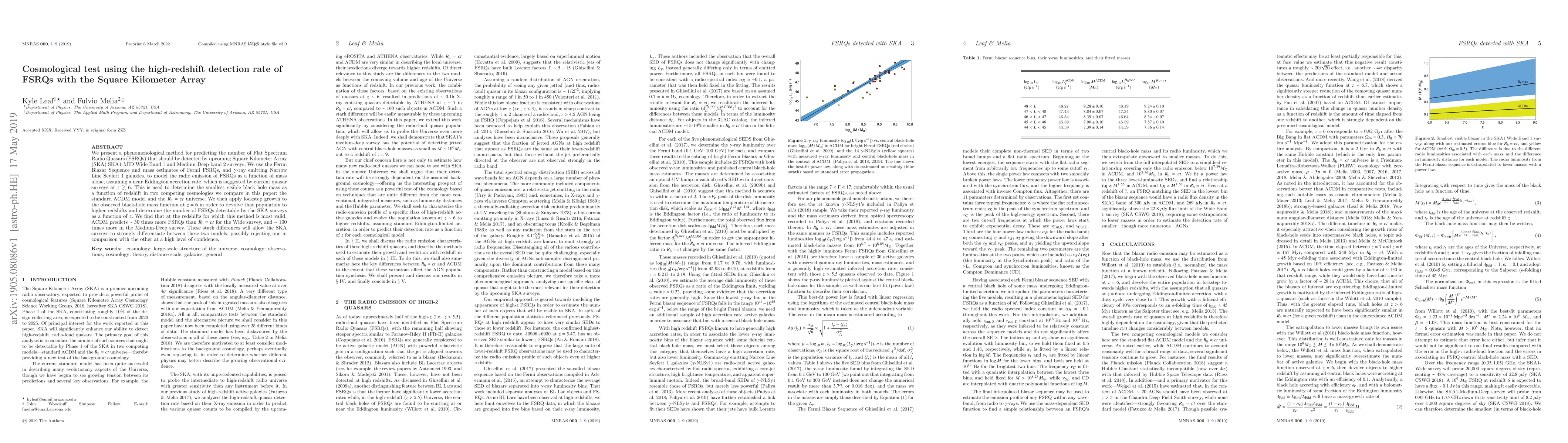 We present a phenomenological method for predicting the number of Flat Spectrum Radio Quasars (FSRQs) that should be detected by upcoming Square Kilometer Array (SKA) SKA1-MID Wide Band 1 and Medium-Deep band 2 surveys. We use the Fermi Blazar Sequence and mass estimates of Fermi FSRQs, and gamma-ray emitting Narrow Line Seyfert 1 galaxies, to model the radio emission of FSRQs as a function of mass alone, assuming a near-Eddington accretion rate, which is suggested by current quasar surveys at z > 6. This is used to determine the smallest visible black hole mass as a function of redshift in two competing cosmologies we compare in this paper: the standard LCDM model and the R_h=ct universe. We then apply lockstep growth to the observed black-hole mass function at $z=6$ in order to devolve that population to higher redshifts and determine the number of FSRQs detectable by the SKA surveys as a function of z. We find that at the redshifts for which this method is most valid, LCDM predicts ~30 times more FSRQs than R_h=ct for the Wide survey, and ~100 times more in the Medium-Deep survey. These stark differences will allow the SKA surveys to strongly differentiate between these two models, possibly rejecting one in comparison with the other at a high level of confidence.