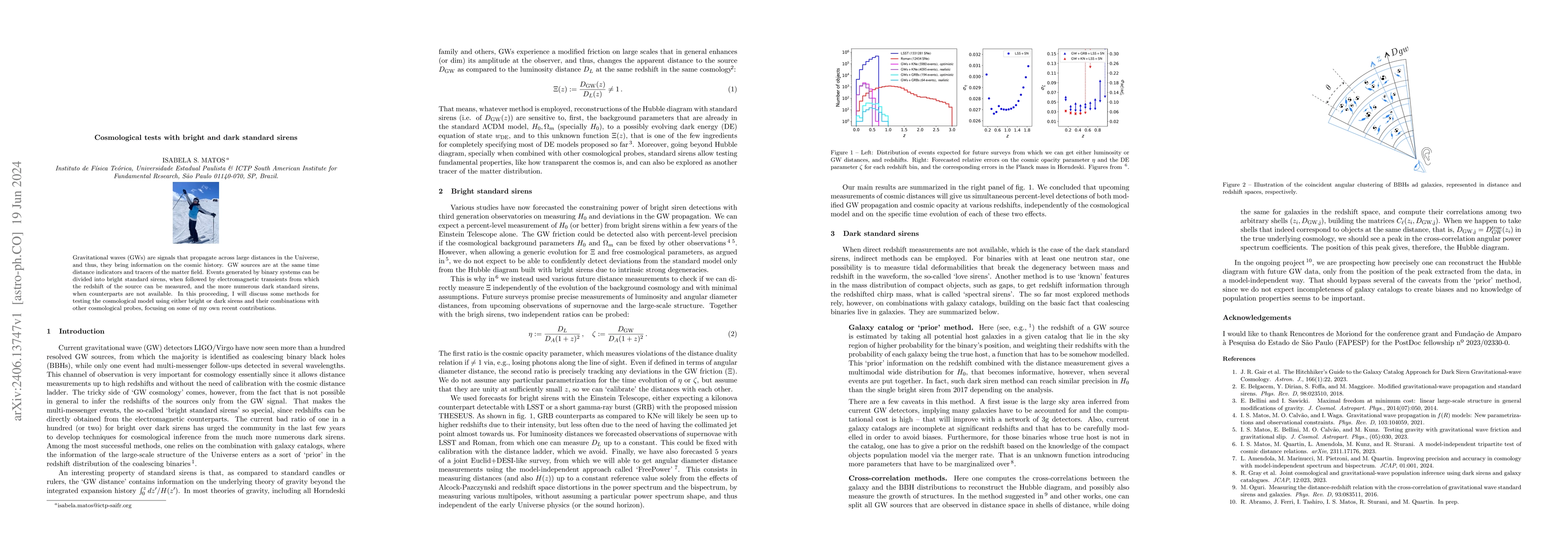 Gravitational waves (GWs) are signals that propagate across large distances in the Universe, and thus, they bring information on the cosmic history. GW sources are at the same time distance indicators and tracers of the matter field. Events generated by binary systems can be divided into bright standard sirens, when followed by electromagnetic transients from which the redshift of the source can be measured, and the more numerous dark standard sirens, when counterparts are not available. In this proceeding, I will discuss some methods for testing the cosmological model using either bright or dark sirens and their combinations with other cosmological probes, focusing on some of my own recent contributions.