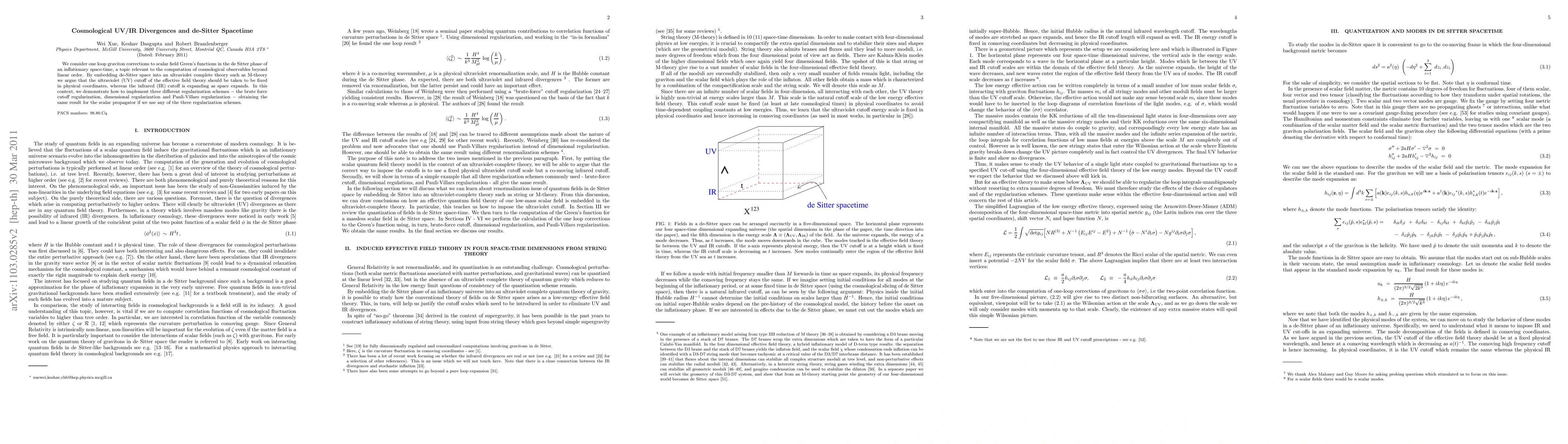 We consider one loop graviton corrections to scalar field Green's functions in the de Sitter phase of an inflationary space-time, a topic relevant to the computation of cosmological observables beyond linear order. By embedding de-Sitter space into an ultraviolet complete theory such as M-theory we argue that the ultraviolet (UV) cutoff of the effective field theory should be taken to be fixed in physical coordinates, whereas the infrared (IR) cutoff is expanding as space expands. In this context, we demonstrate how to implement three different regularization schemes -- the brute force cutoff regularization, dimensional regularization and Pauli-Villars regularization -- obtaining the same result for the scalar propagator if we use any of the three regularization schemes.
