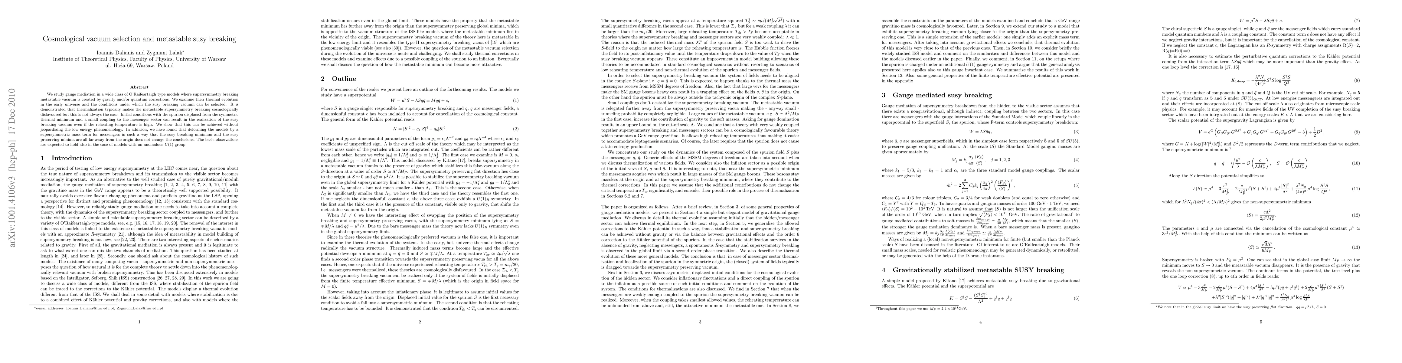 This paper investigates gauge mediation in O'Raifeartaigh models leading to metastable supersymmetry breaking vacua, finding that high reheating temperatures usually disfavor such vacua unless initial conditions and small messenger couplings permit their selection, without affecting low-energy phenomenology.