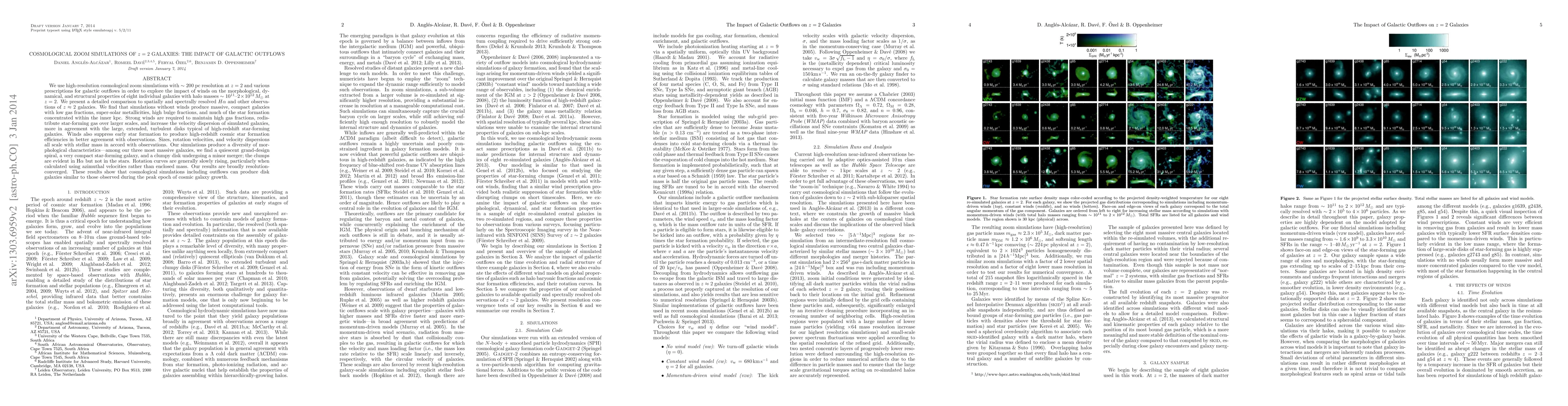 We use high-resolution cosmological zoom simulations with ~200 pc resolution at z = 2 and various prescriptions for galactic outflows in order to explore the impact of winds on the morphological, dynamical, and structural properties of eight individual galaxies with halo masses ~ 10^11--2x10^12 Msun at z = 2. We present a detailed comparison to spatially and spectrally resolved H{\alpha} and other observations of z ~ 2 galaxies. We find that simulations without winds produce massive, compact galaxies with low gas fractions, super-solar metallicities, high bulge fractions, and much of the star formation concentrated within the inner kpc. Strong winds are required to maintain high gas fractions, redistribute star-forming gas over larger scales, and increase the velocity dispersion of simulated galaxies, more in agreement with the large, extended, turbulent disks typical of high-redshift star-forming galaxies. Winds also suppress early star formation to produce high-redshift cosmic star formation efficiencies in better agreement with observations. Sizes, rotation velocities, and velocity dispersions all scale with stellar mass in accord with observations. Our simulations produce a diversity of morphological characteristics - among our three most massive galaxies, we find a quiescent grand-design spiral, a very compact star-forming galaxy, and a clumpy disk undergoing a minor merger; the clumps are evident in H{\alpha} but not in the stars. Rotation curves are generally slowly rising, particularly when calculated using azimuthal velocities rather than enclosed mass. Our results are broadly resolution-converged. These results show that cosmological simulations including outflows can produce disk galaxies similar to those observed during the peak epoch of cosmic galaxy growth.