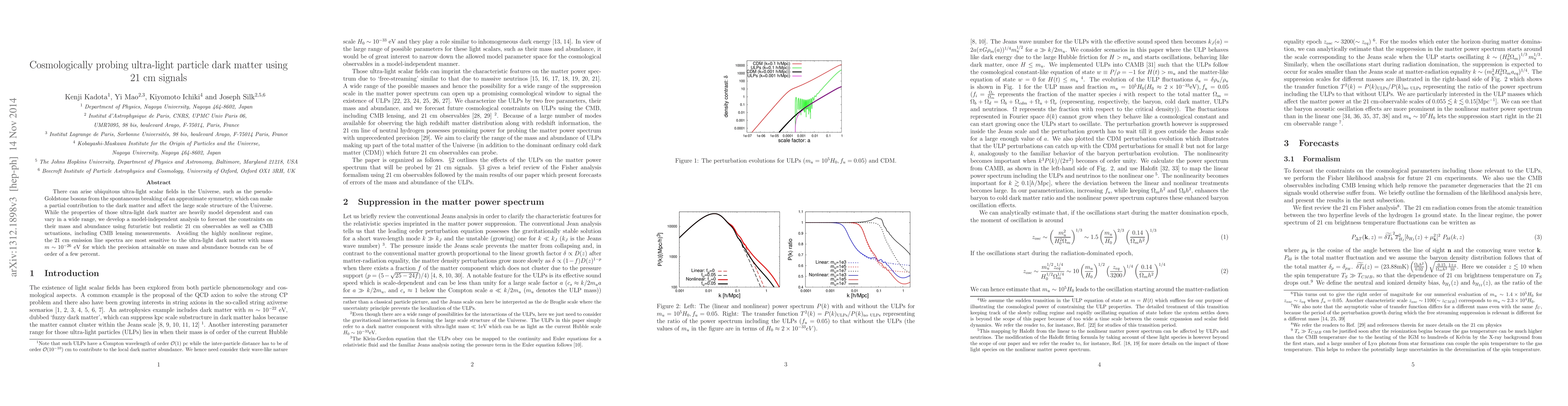 There can arise ubiquitous ultra-light scalar fields in the Universe, such as the pseudo-Goldstone bosons from the spontaneous breaking of an approximate symmetry, which can make a partial contribution to the dark matter and affect the large scale structure of the Universe. While the properties of those ultra-light dark matter are heavily model dependent and can vary in a wide range, we develop a model-independent analysis to forecast the constraints on their mass and abundance using futuristic but realistic 21 cm observables as well as CMB fluctuations, including CMB lensing measurements. Avoiding the highly nonlinear regime, the 21 cm emission line spectra are most sensitive to the ultra-light dark matter with mass m ~10^{-26} eV for which the precision attainable on mass and abundance bounds can be of order of a few percent.