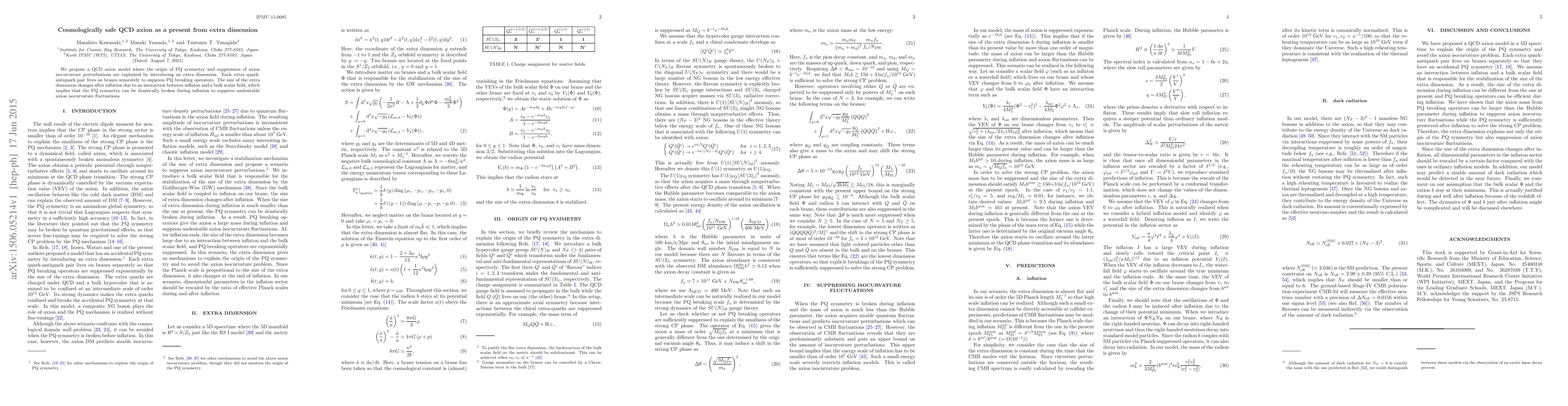 We propose a QCD axion model where the origin of PQ symmetry and suppression of axion isocurvature perturbations are explained by introducing an extra dimension. Each extra quark-antiquark pair lives on branes separately to suppress PQ breaking operators. The size of the extra dimension changes after inflation due to an interaction between inflaton and a bulk scalar field, which implies that the PQ symmetry can be drastically broken during inflation to suppress undesirable axion isocurvature fluctuations.