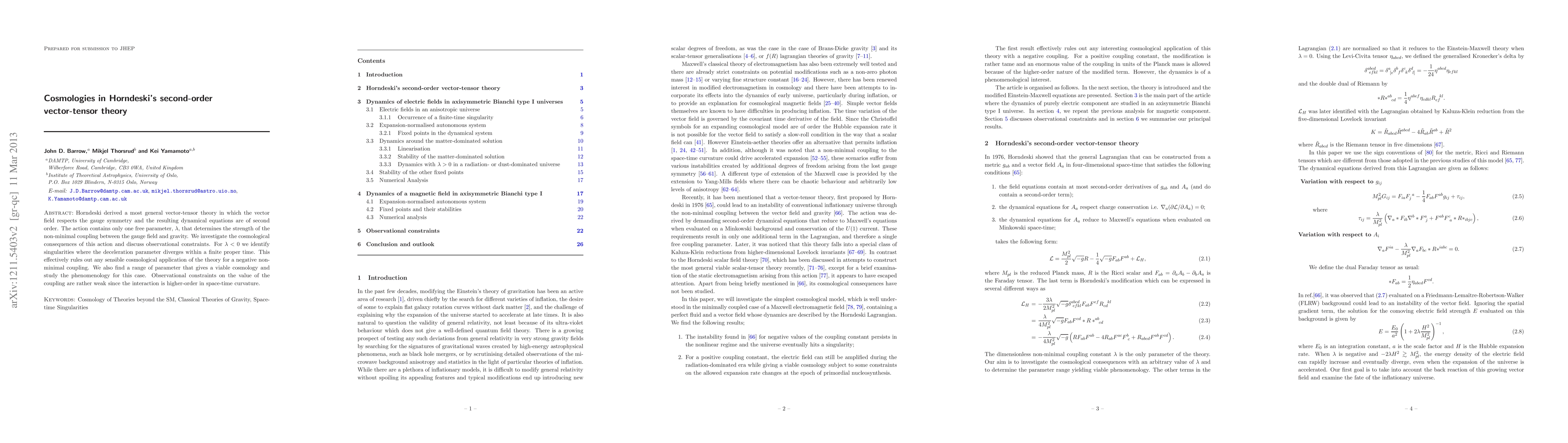 Horndeski derived a most general vector-tensor theory in which the vector field respects the gauge symmetry and the resulting dynamical equations are of second order. The action contains only one free parameter, $\lambda$, that determines the strength of the non-minimal coupling between the gauge field and gravity. We investigate the cosmological consequences of this action and discuss observational constraints. For $\lambda<0$ we identify singularities where the deceleration parameter diverges within a finite proper time. This effectively rules out any sensible cosmological application of the theory for a negative non-minimal coupling. We also find a range of parameter that gives a viable cosmology and study the phenomenology for this case. Observational constraints on the value of the coupling are rather weak since the interaction is higher-order in space-time curvature.