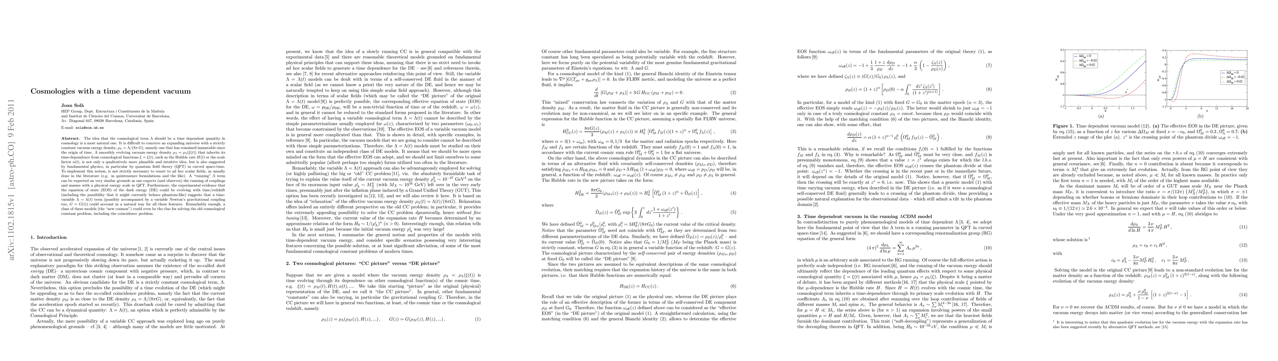 The idea that the cosmological term, Lambda, should be a time dependent quantity in cosmology is a most natural one. It is difficult to conceive an expanding universe with a strictly constant vacuum energy density, namely one that has remained immutable since the origin of time. A smoothly evolving vacuum energy density that inherits its time-dependence from cosmological functions, such as the Hubble rate or the scale factor, is not only a qualitatively more plausible and intuitive idea, but is also suggested by fundamental physics, in particular by quantum field theory (QFT) in curved space-time. To implement this notion, is not strictly necessary to resort to ad hoc scalar fields, as usually done in the literature (e.g. in quintessence formulations and the like). A "running" Lambda term can be expected on very similar grounds as one expects (and observes) the running of couplings and masses with a physical energy scale in QFT. Furthermore, the experimental evidence that the equation of state of the dark energy could be evolving with time/redshift (including the possibility that it might currently behave phantom-like) suggests that a time-variable Lambda term (possibly accompanied by a variable Newton's gravitational coupling G=G(t)) could account in a natural way for all these features. Remarkably enough, a class of these models (the "new cosmon") could even be the clue for solving the old cosmological constant problem, including the coincidence problem.