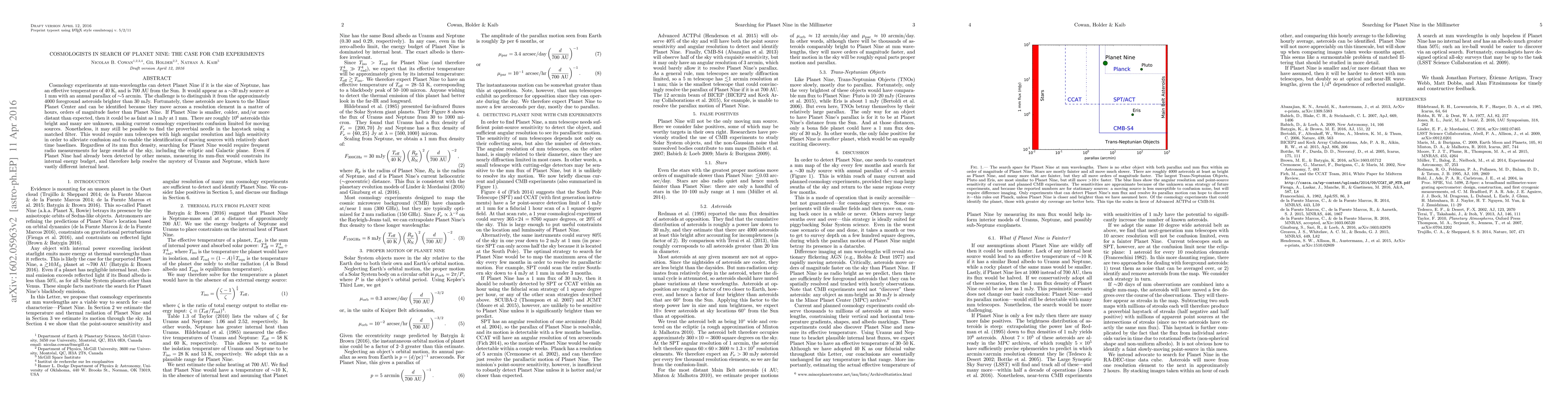 Researchers propose using mm-wavelength cosmology experiments to detect Planet Nine, a hypothetical giant planet in our solar system, if it meets specific size, temperature, and distance conditions. The challenge lies in distinguishing it from thousands of foreground asteroids that move across the same resolution element.