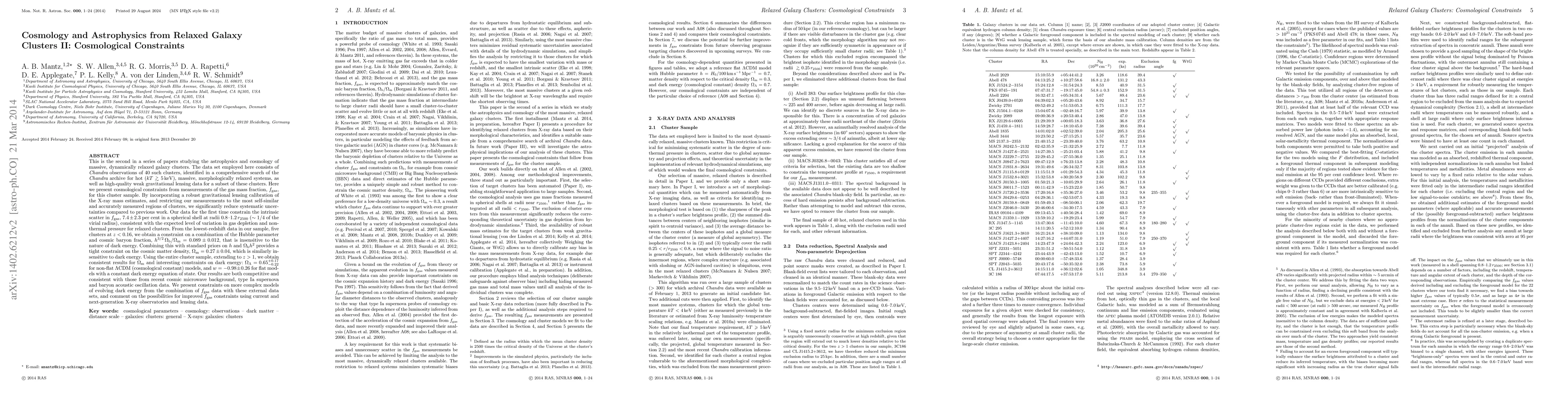This paper derives cosmological constraints from gas mass fraction measurements in relaxed galaxy clusters using Chandra observations and weak gravitational lensing data. The study provides tight constraints on the cosmic matter density and dark energy parameters, consistent with other recent observations.