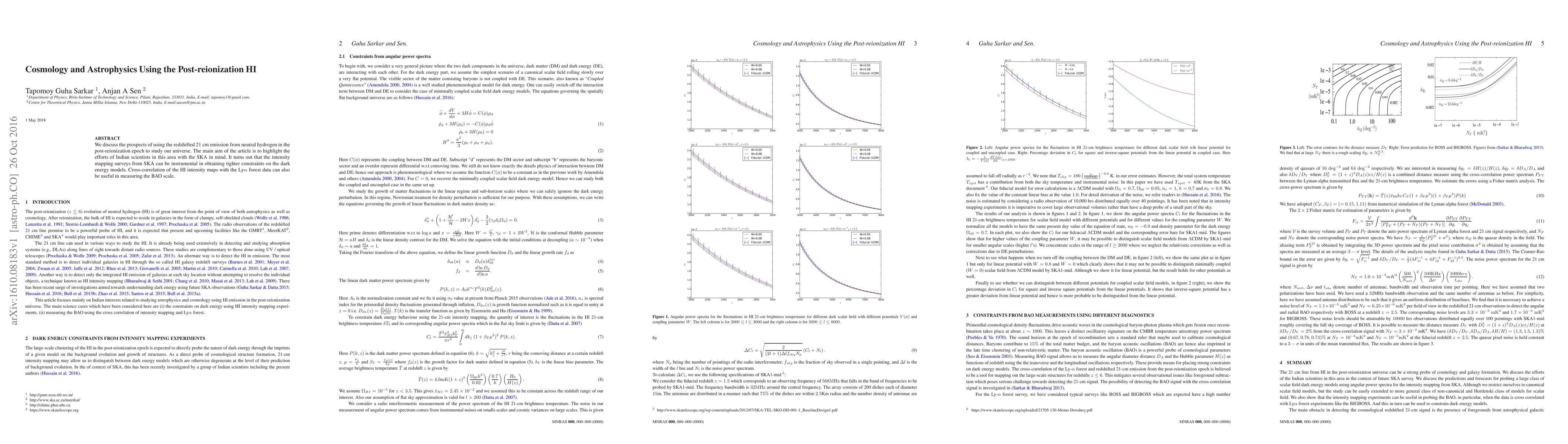 This paper explores the potential of redshifted 21 cm emission from neutral hydrogen to study the universe post-reionization, emphasizing Indian scientists' contributions. It highlights how SKA's intensity mapping surveys can provide tighter constraints on dark energy models and measure the BAO scale via cross-correlation with Ly$\alpha$ forest data.