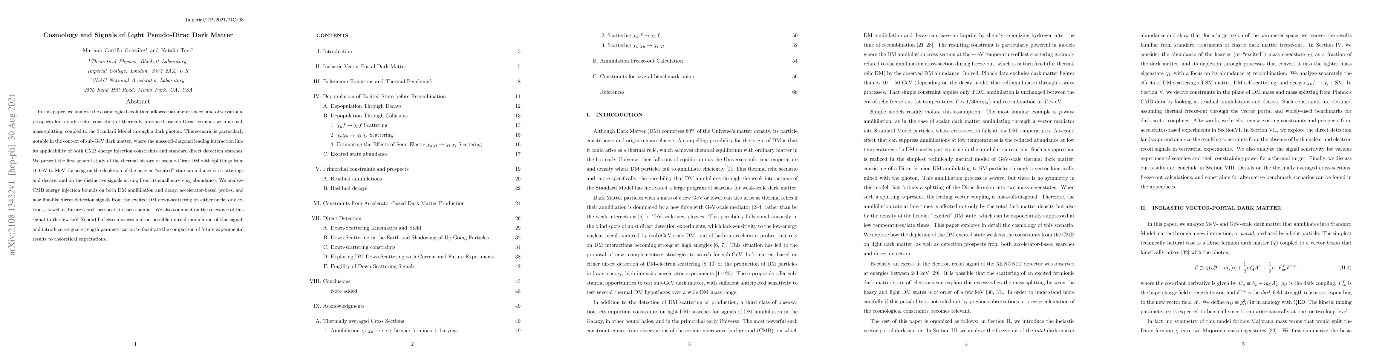 This paper investigates the cosmological evolution and observational prospects of a dark sector with pseudo-Dirac fermions featuring a small mass splitting, coupled to the Standard Model via a dark photon. It explores the thermal history and distinctive signals from the surviving "excited" state, including potential links to the Xenon1T electron excess and future detection prospects.