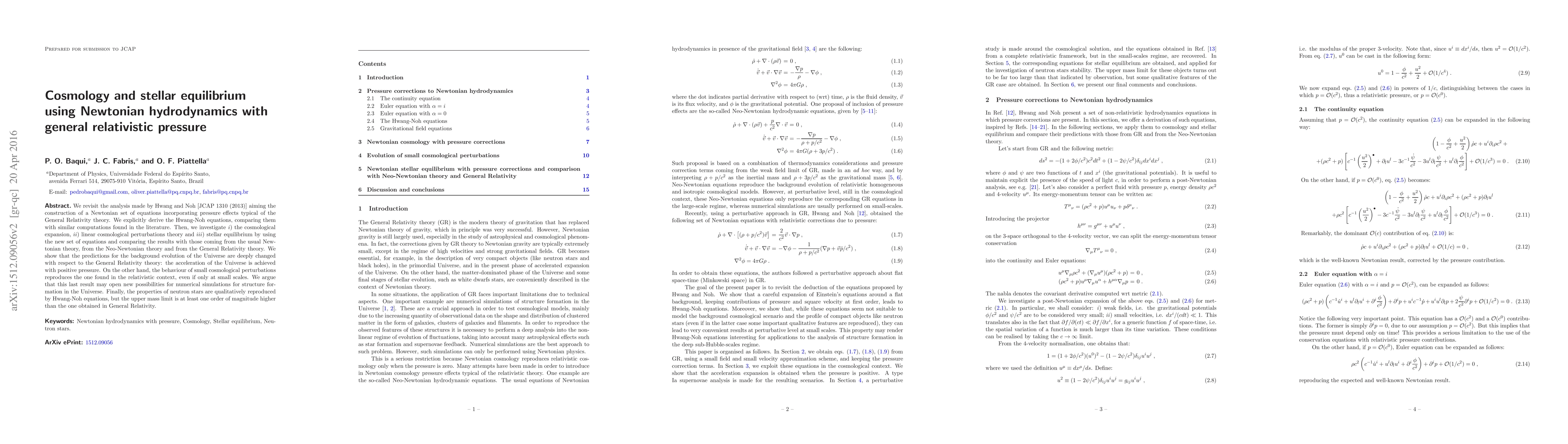This paper revisits the Hwang-Noh equations, which incorporate relativistic pressure effects into Newtonian hydrodynamics, and applies them to cosmology and stellar equilibrium. The results show significant differences in the background expansion of the Universe compared to General Relativity, while small-scale cosmological perturbations align with relativistic predictions. Neutron stars' properties are qualitatively reproduced, but their mass limits are much higher than in General Relativity.