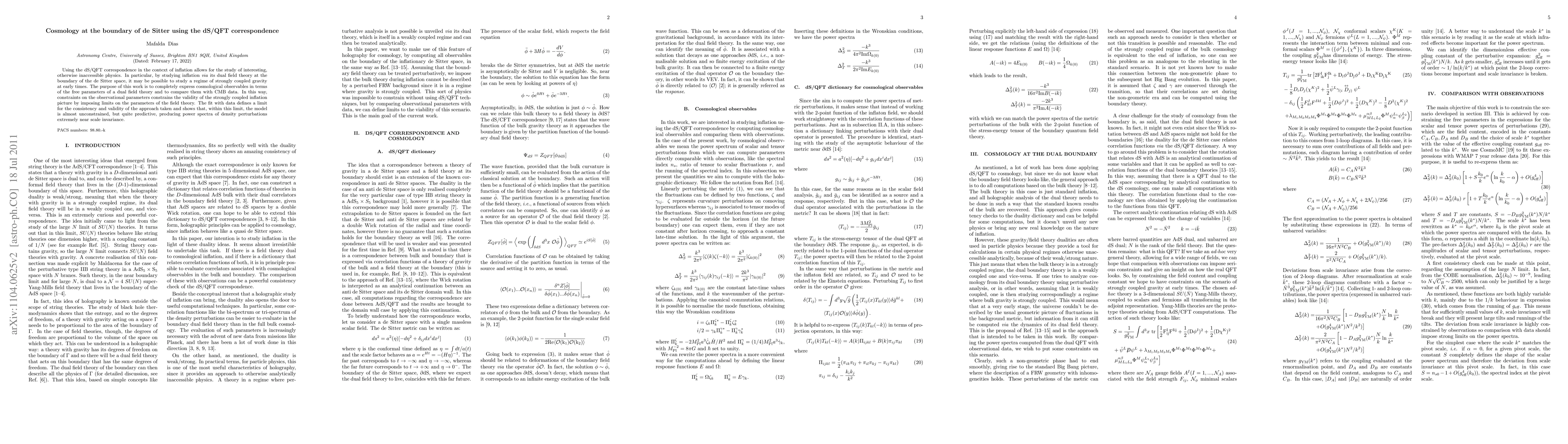 Using the dS/QFT correspondence in the context of inflation allows for the study of interesting, otherwise inaccessible physics. In particular, by studying inflation via its dual field theory at the boundary of the de Sitter space, it may be possible to study a regime of strongly coupled gravity at early times. The purpose of this work is to completely express cosmological observables in terms of the free parameters of a dual field theory and to compare them with CMB data. In this way, constraints on the observational parameters constrains the validity of the strongly coupled inflation picture by imposing limits on the parameters of the field theory. The fit with data defines a limit for the consistency and validity of the approach taken and shows that, within this limit, the model is almost unconstrained, but quite predictive, producing power spectra of density perturbations extremely near scale invariance.