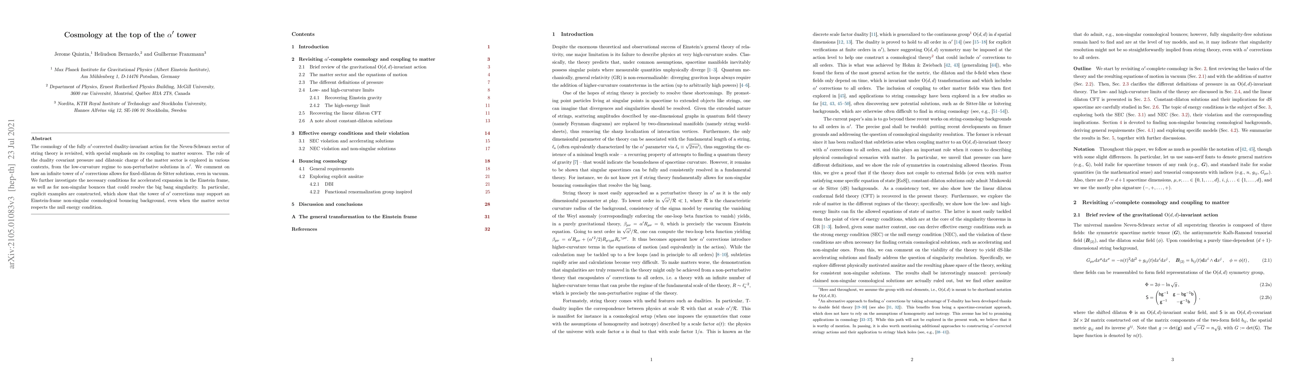 The cosmology of the fully $\alpha'$-corrected duality-invariant action for the Neveu-Schwarz sector of string theory is revisited, with special emphasis on its coupling to matter sources. The role of the duality covariant pressure and dilatonic charge of the matter sector is explored in various contexts, from the low-curvature regime to non-perturbative solutions in $\alpha'$. We comment on how an infinite tower of $\alpha'$ corrections allows for fixed-dilaton de Sitter solutions, even in vacuum. We further investigate the necessary conditions for accelerated expansion in the Einstein frame, as well as for non-singular bounces that could resolve the big bang singularity. In particular, explicit examples are constructed, which show that the tower of $\alpha'$ corrections may support an Einstein-frame non-singular cosmological bouncing background, even when the matter sector respects the null energy condition.