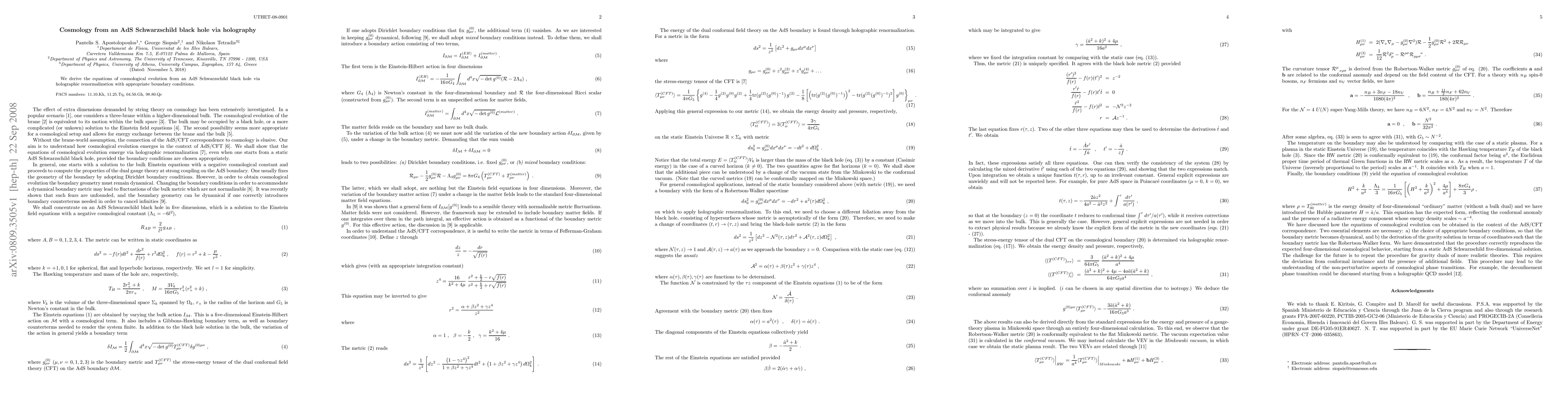 We derive the equations of cosmological evolution from an AdS Schwarzschild black hole via holographic renormalization with appropriate boundary conditions.