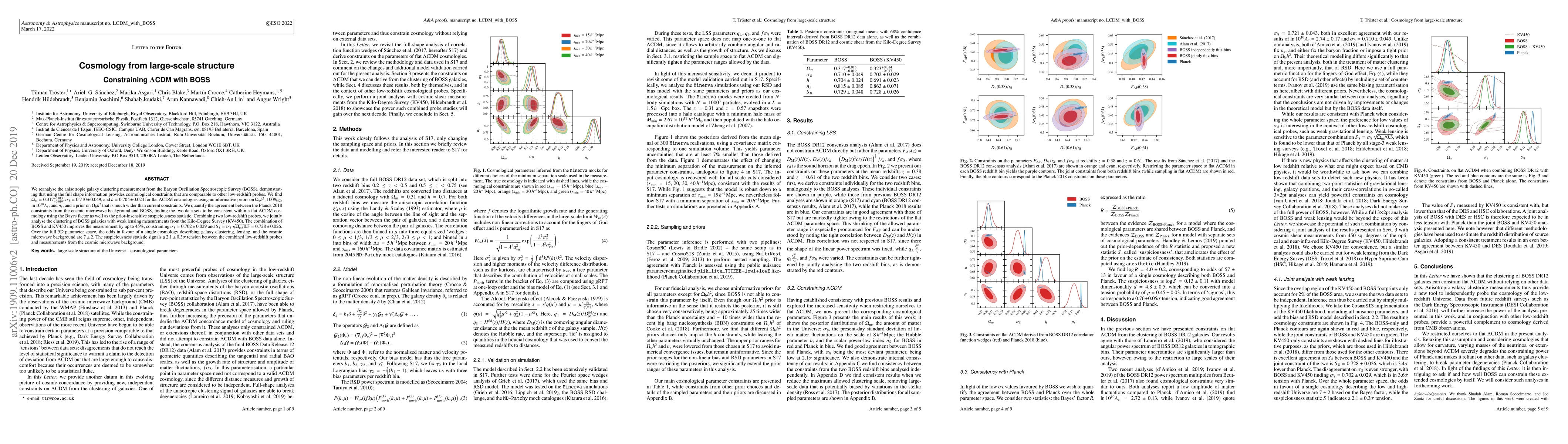We reanalyse the anisotropic galaxy clustering measurement from the Baryon Oscillation Spectroscopic Survey (BOSS), demonstrating that using the full shape information provides cosmological constraints that are comparable to other low-redshift probes. We find $\Omega_\mathrm{m} = 0.317^{+0.015}_{-0.019}$, $\sigma_8 = 0.710\pm 0.049$, and $h = 0.704\pm 0.024$ for flat $\Lambda$CDM cosmologies using uninformative priors on $\Omega_\mathrm{c}h^2$, $100\theta_\mathrm{MC}$, $\ln 10^{10} A_{s}$, and $n_{s}$, and a prior on $\Omega_\mathrm{b}h^2$ that is much wider than current constraints. We quantify the agreement between the Planck 2018 constraints from the cosmic microwave background and BOSS, finding the two data sets to be consistent within a flat $\Lambda$CDM cosmology using the Bayes factor as well as the prior-insensitive suspiciousness statistic. Combining two low-redshift probes, we jointly analyse the clustering of BOSS galaxies with weak lensing measurements from the Kilo-Degree Survey (KV450). The combination of BOSS and KV450 improves the measurement by up to 45%, constraining $\sigma_8 = 0.702\pm 0.029$ and $S_8 = \sigma_8\sqrt{\Omega_\mathrm{m}/0.3} = 0.728\pm 0.026$. Over the full 5D parameter space, the odds in favour of single cosmology describing galaxy clustering, lensing, and the cosmic microwave background are $7\pm2$. The suspiciousness statistic signals a $2.1\pm0.3\sigma$ tension between the combined low-redshift probes and measurements from the cosmic microwave background.