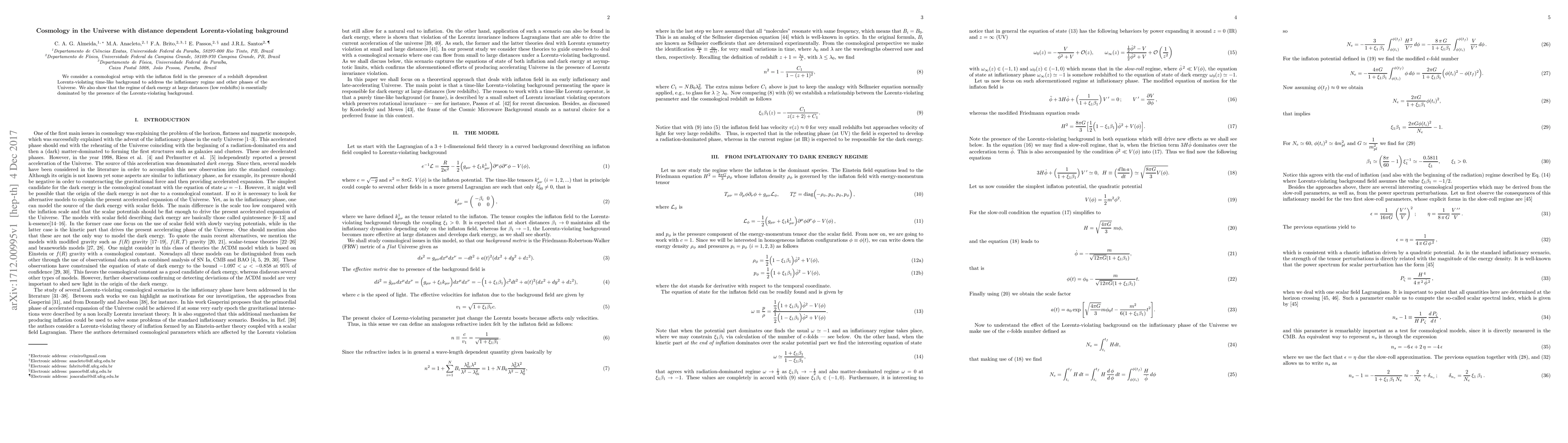 This paper explores cosmology with an inflaton field in a redshift-dependent Lorentz-violating background, addressing inflation and dark energy phases, revealing that the Lorentz-violating background significantly influences dark energy at large distances.