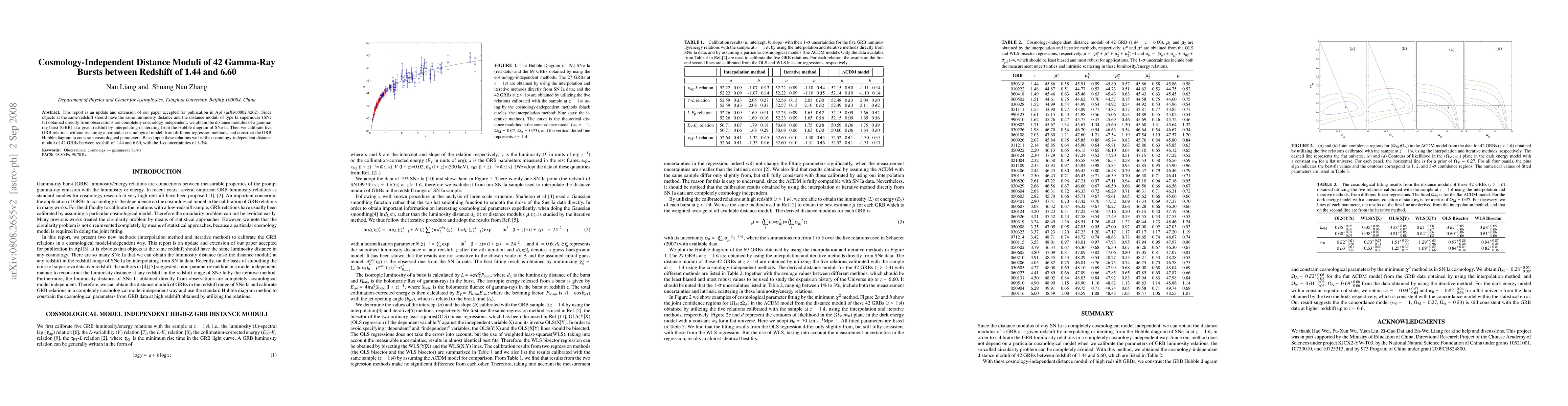 This report is an update and extension of our paper accepted for publication in ApJ (arXiv:0802.4262). Since objects at the same redshift should have the same luminosity distance and the distance moduli of type Ia supernovae (SNe Ia) obtained directly from observations are completely cosmology independent, we obtain the distance modulus of a gamma-ray burst (GRB) at a given redshift by interpolating or iterating from the Hubble diagram of SNe Ia. Then we calibrate five GRB relations without assuming a particular cosmological model, from different regression methods, and construct the GRB Hubble diagram to constrain cosmological parameters. Based upon these relations we list the cosmology-independent distance moduli of 42 GRBs between redshift of 1.44 and 6.60, with the 1-$\sigma$ uncertainties of 1-3%.