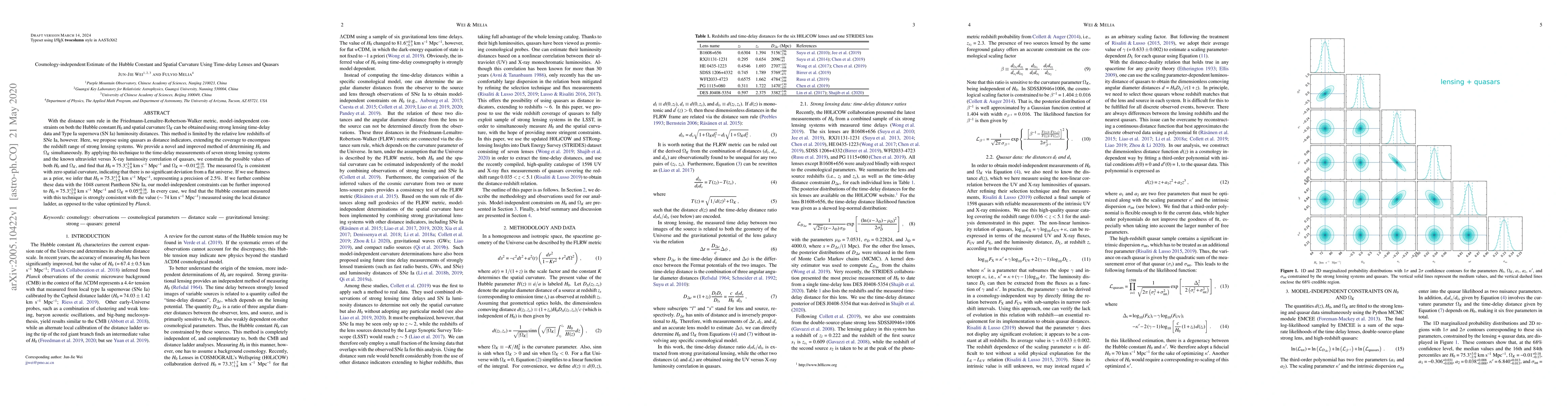 This paper proposes a cosmology-independent method to estimate the Hubble constant and spatial curvature using quasars and time-delay lenses, finding $H_0=75.3^{+3.0}_{-2.9}$ km $\rm s^{-1}$ $\rm Mpc^{-1}$ and $\Omega_{K}=-0.01^{+0.18}_{-0.17}$, consistent with a flat universe. The method shows strong consistency with the local distance ladder value.