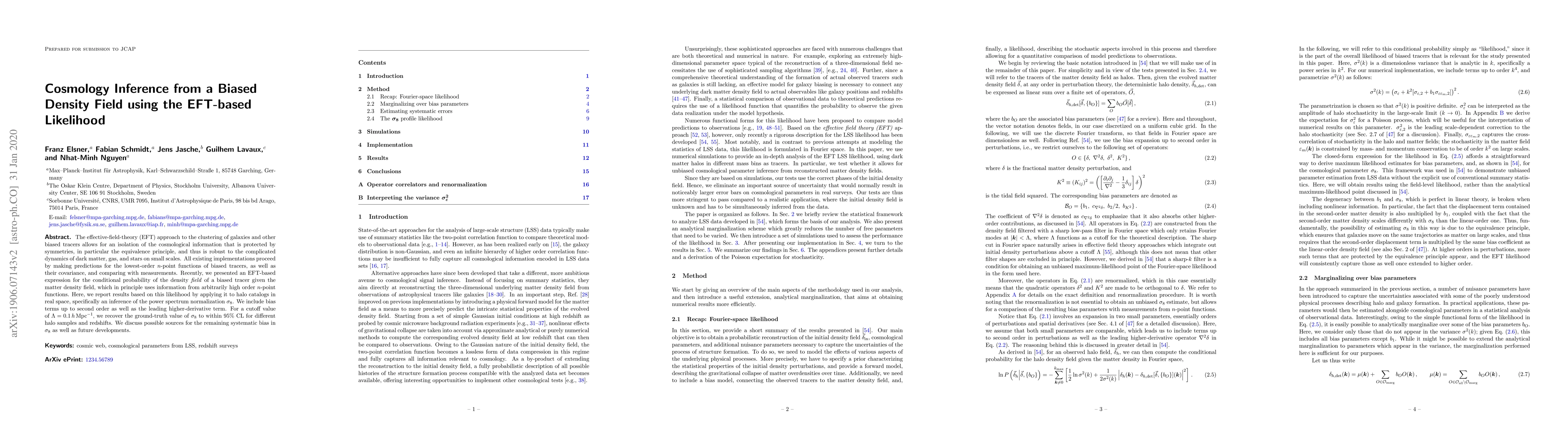 This paper utilizes an effective-field-theory (EFT) based likelihood approach to infer cosmological parameters from biased tracers, achieving robust results by incorporating higher-order $n$-point functions. This method successfully recovers the power spectrum normalization $\sigma_8$ to within 95% confidence level, highlighting potential sources of systematic bias and outlining future improvements.