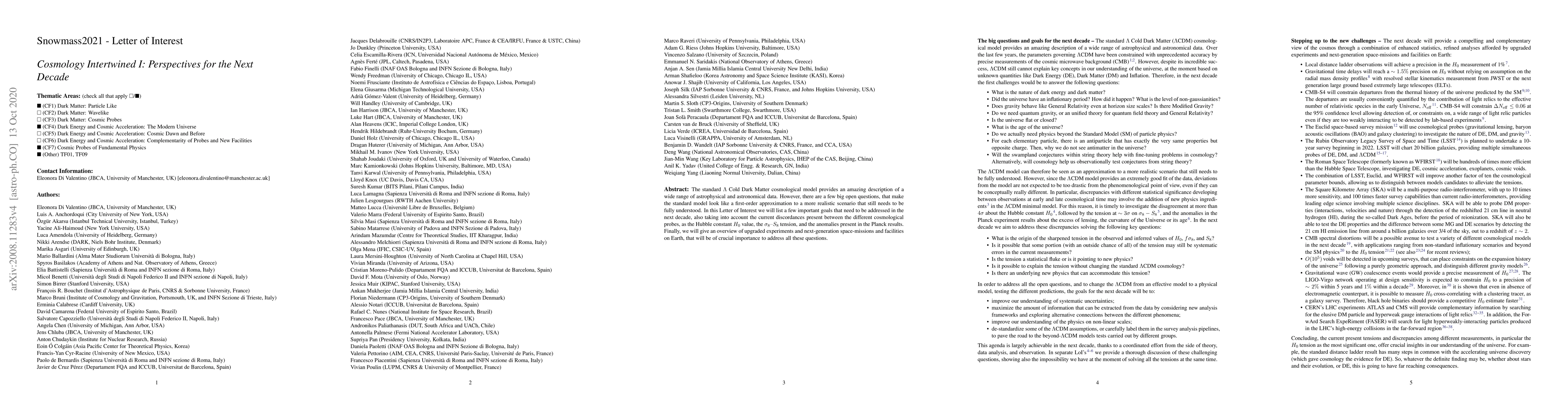 This paper outlines key goals for advancing cosmology over the next decade, emphasizing unresolved issues like the Hubble constant discrepancy and tensions in $\sigma_8$ and $S_8$ values. It also highlights upcoming experiments and space missions that aim to resolve these challenges.