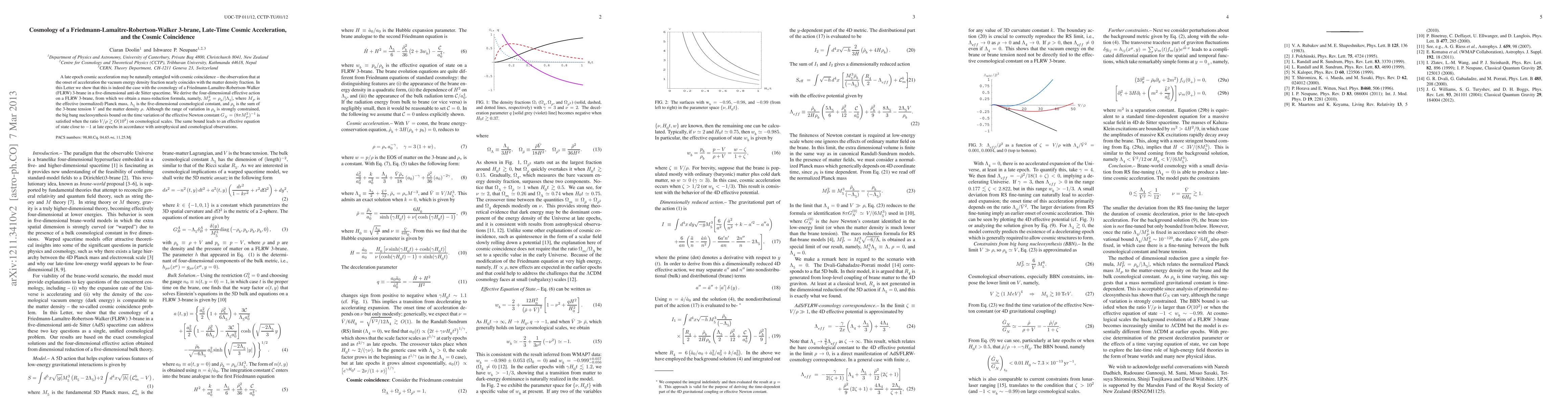 This paper explores the cosmology of a Friedmann-Lemaître-Robertson-Walker (FLRW) 3-brane in a five-dimensional anti-de Sitter spacetime, demonstrating a natural connection between late-time cosmic acceleration and the cosmic coincidence. It derives a reduction formula linking the effective Planck mass, the 5-dimensional cosmological constant, and the sum of brane tension and matter density, consistent with current astrophysical observations.