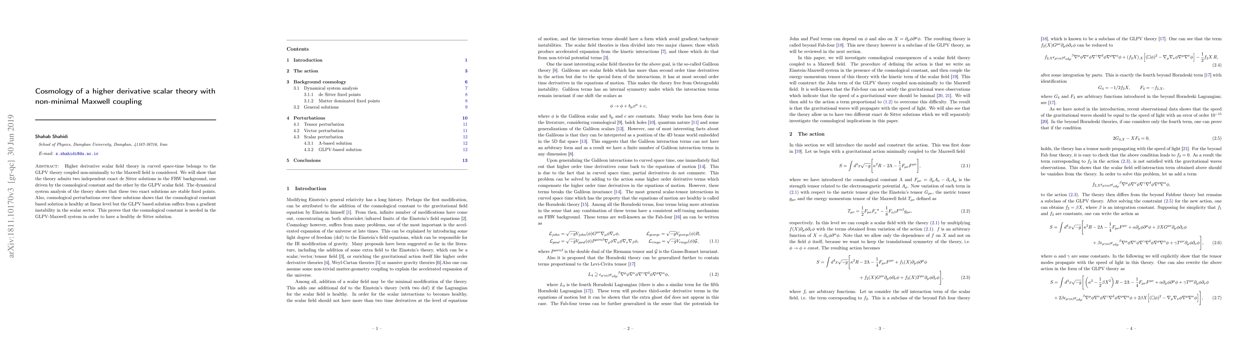 The research methodology involves analyzing a higher derivative scalar theory with non-minimal Maxwell coupling in curved spaced-time, focusing on its cosmological implications.