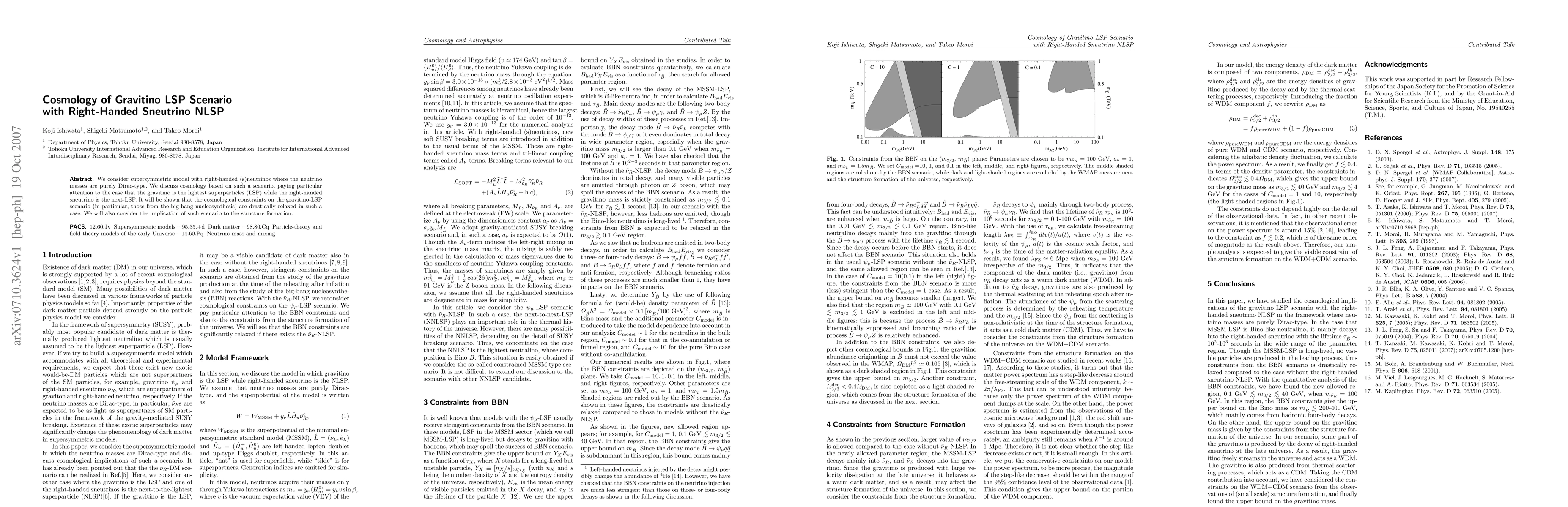This paper explores a supersymmetric cosmology where the gravitino is the lightest superparticle (LSP) and the right-handed sneutrino is the next-LSP, showing that this scenario relaxes cosmological constraints from big-bang nucleosynthesis. It also examines the implications for structure formation in the universe.