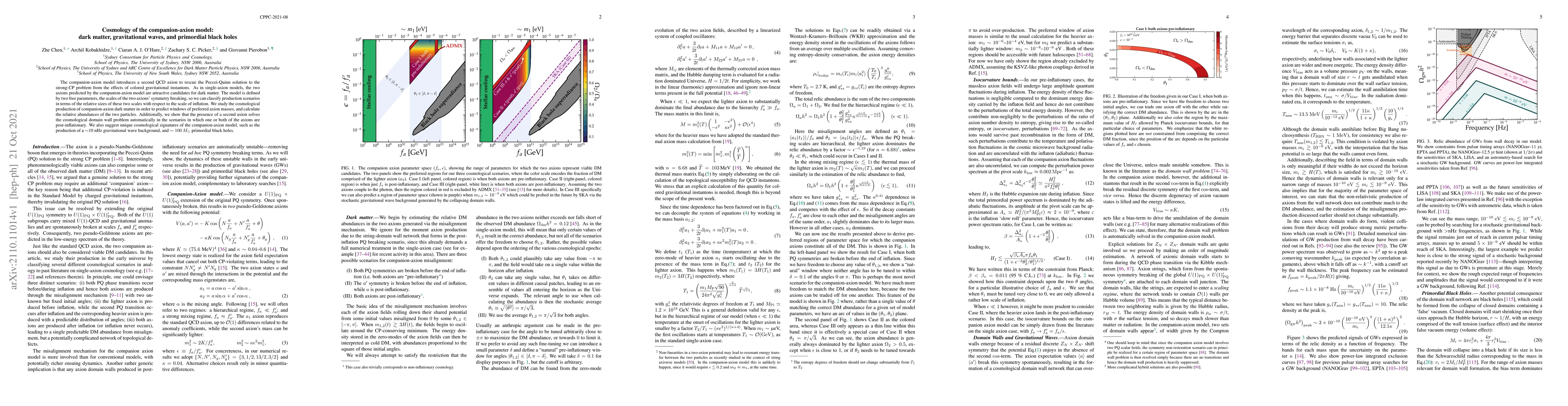 The companion-axion model introduces a second QCD axion to address the strong-CP problem, potentially offering dark matter candidates and solving the domain wall problem. It predicts unique cosmological signatures, including a 10 nHz gravitational wave background and primordial black holes.