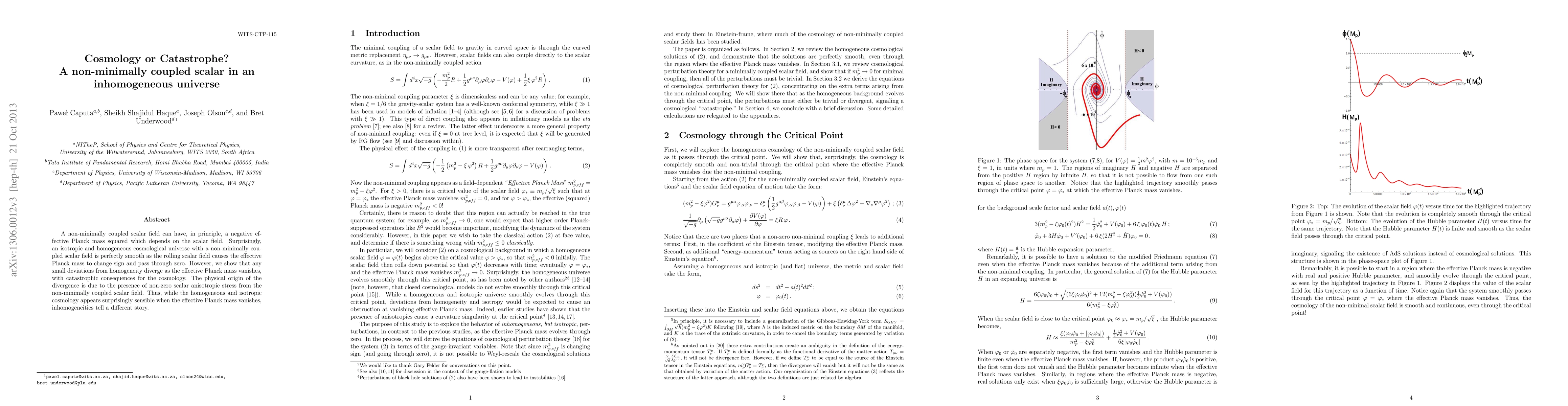 This paper explores the implications of a non-minimally coupled scalar field in cosmology, finding that while a homogeneous universe remains stable, small inhomogeneities lead to catastrophic divergences due to the vanishing effective Planck mass and resulting anisotropic stress.