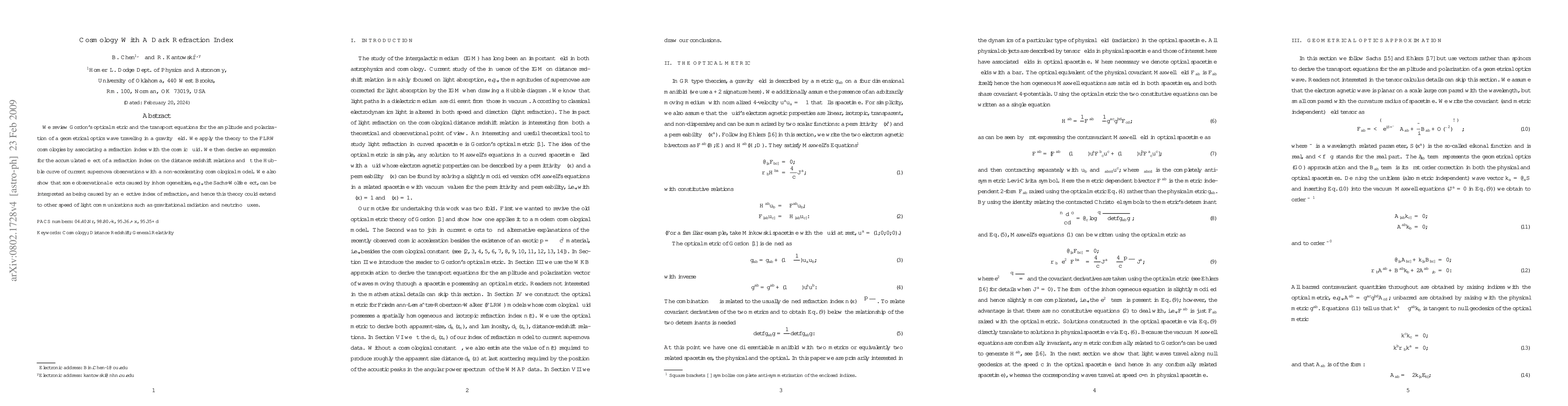 We review Gordon's optical metric and the transport equations for the amplitude and polarization of a geometrical optics wave traveling in a gravity field. We apply the theory to the FLRW cosmologies by associating a refraction index with the cosmic fluid. We then derive an expression for the accumulated effect of a refraction index on the distance redshift relations and fit the Hubble curve of current supernova observations with a non-accelerating cosmological model. We also show that some observational effects caused by inhomogeneities, e.g. the Sachs-Wolfe effect, can be interpreted as being caused by an effective index of refraction, and hence this theory could extend to other speed of light communications such as gravitational radiation and neutrino fluxes.